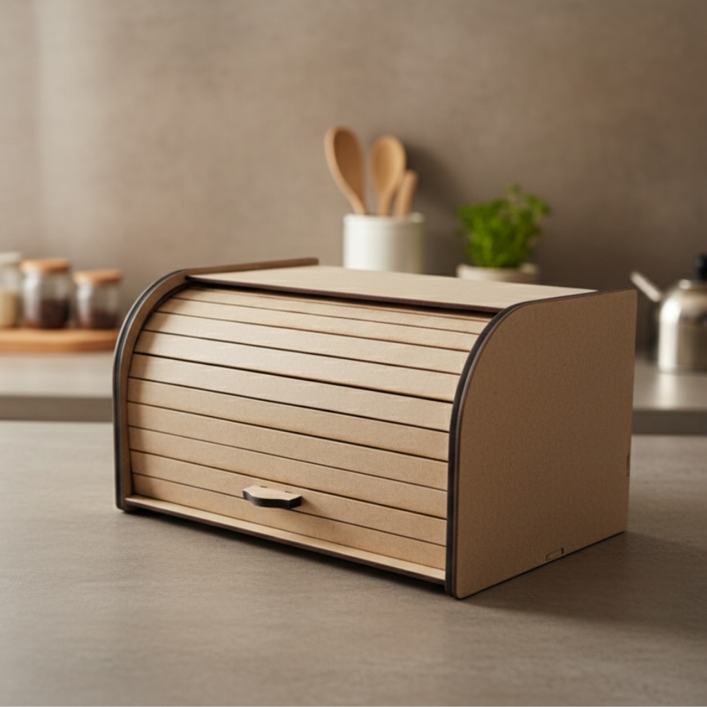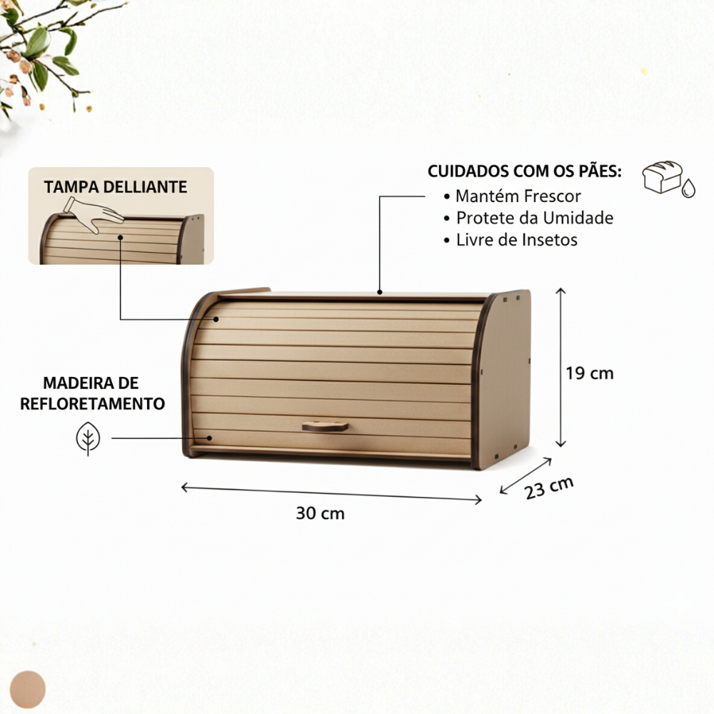 Porta Pão Organizador Biscoitos Guarda Bolos Cesto Pães Frescos Tampa Retrátil Bancada de Cozinha