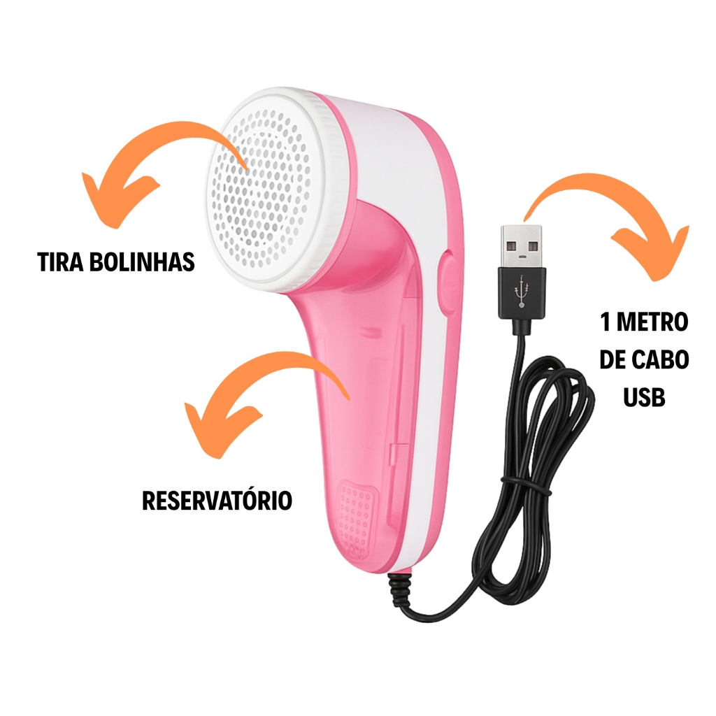 Papa Bolinhas Elétrico USB Bivolt – Remove Bolinhas das Roupas, Cabo 1m, Roupas Sempre Novas!