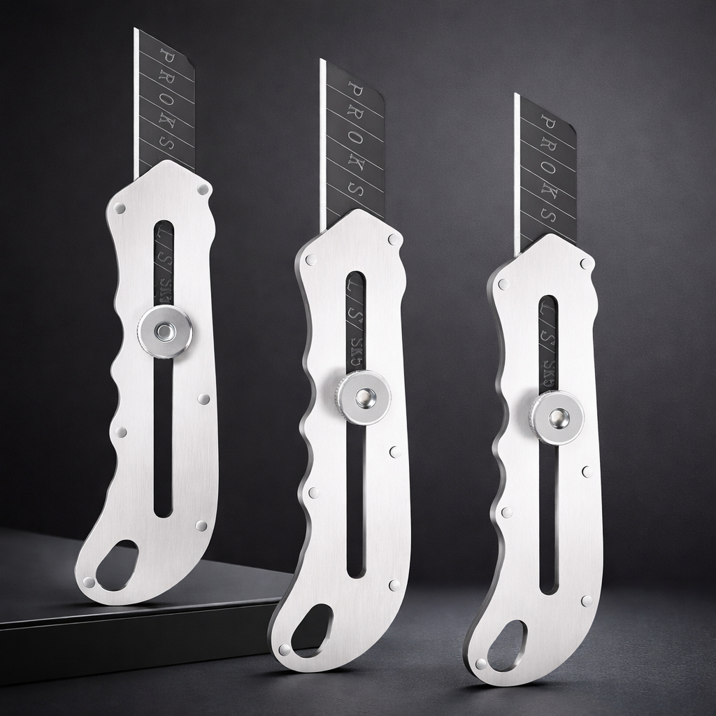 Kit 10 Estiletes Profissionais Metal Retrátil com Trava Segurança Lâmina Afiada Corte Preciso Multiuso