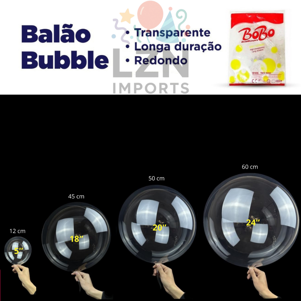 Kit 5/10/20/30/40/50 Balão Bubble 18 Polegadas Transparente Cristal 45cm Bolha BoBo Festa Decoração