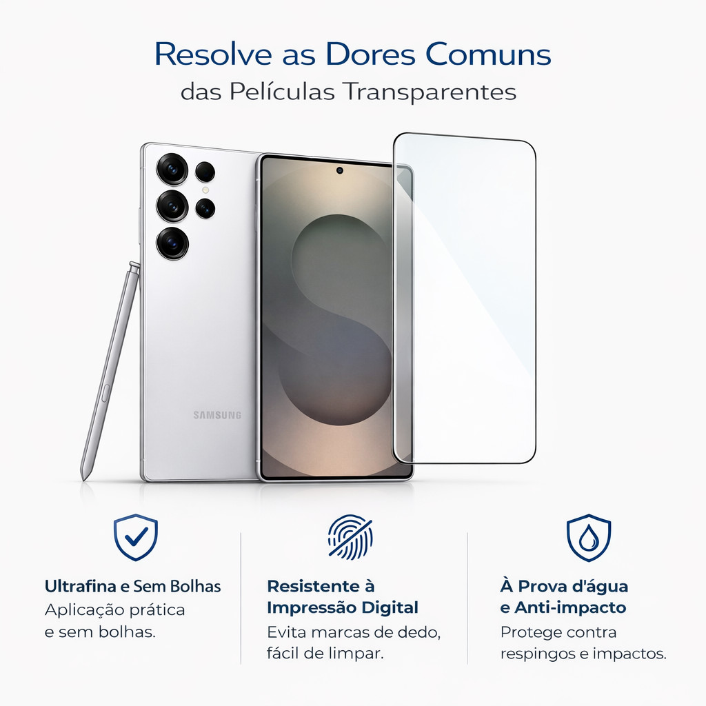 Película de Vidro Temperado Ultrashield para Samsung Galaxy S25 Ultra · HD · 9H · Tela Completa · com recorte para impre