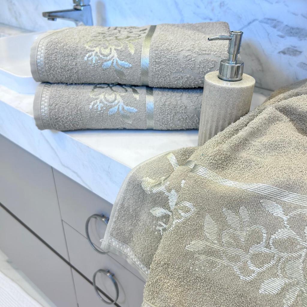 Kit 2 Toalha de Banho Garden 100% Algodão Floral Jacquard, Maciez Premium e Alta Absorção 75x130
