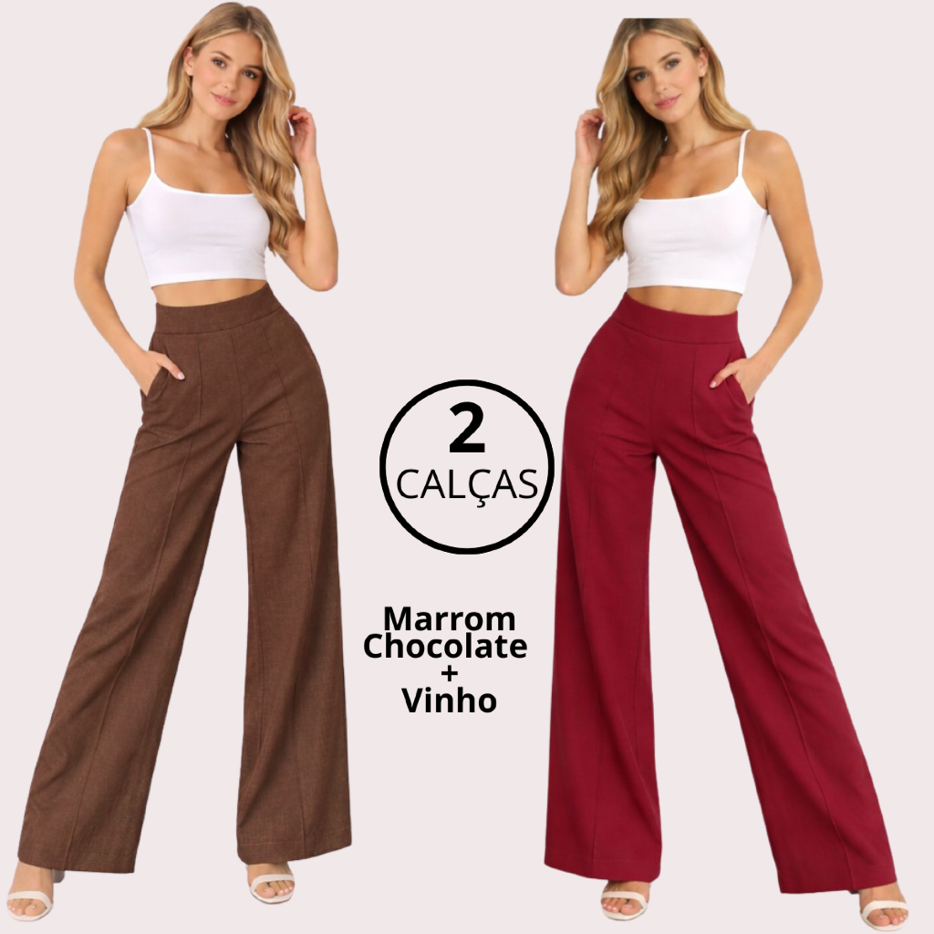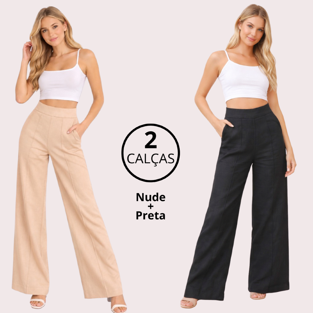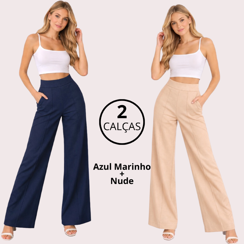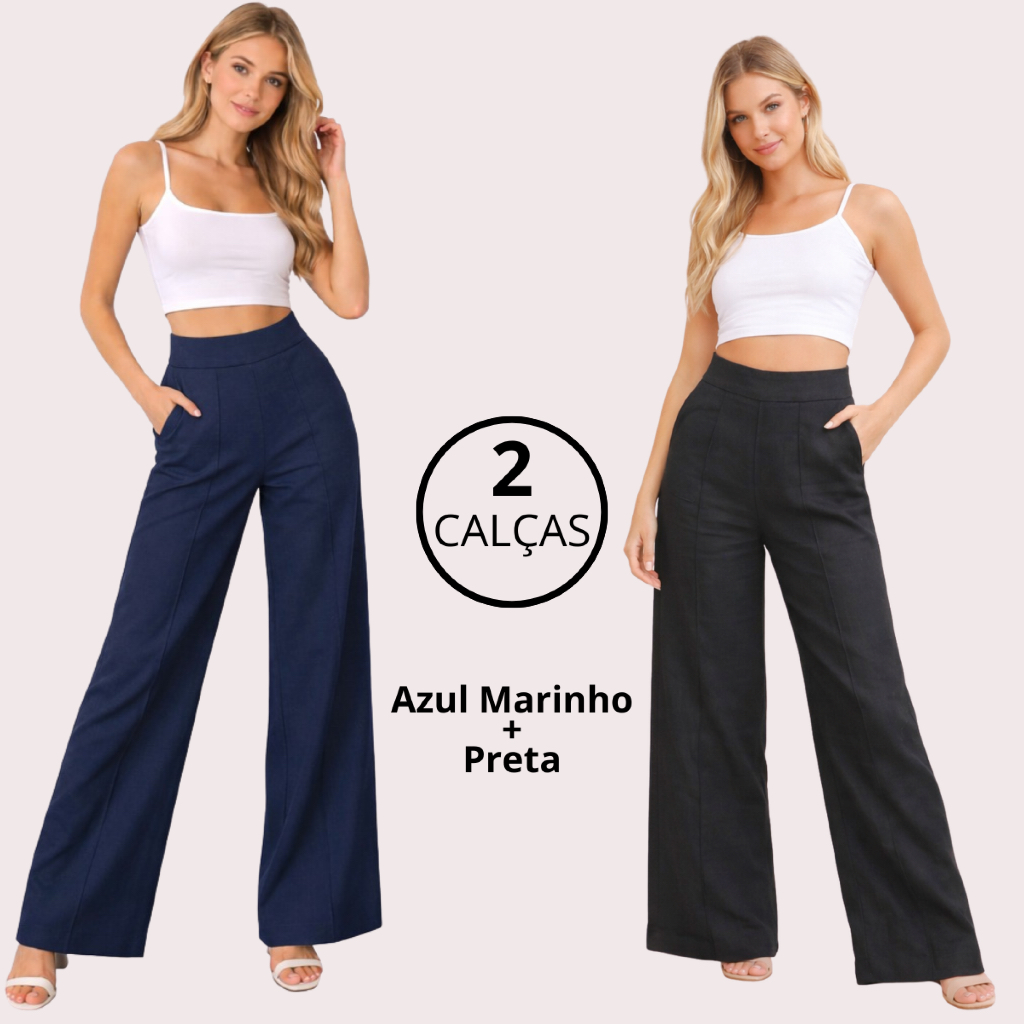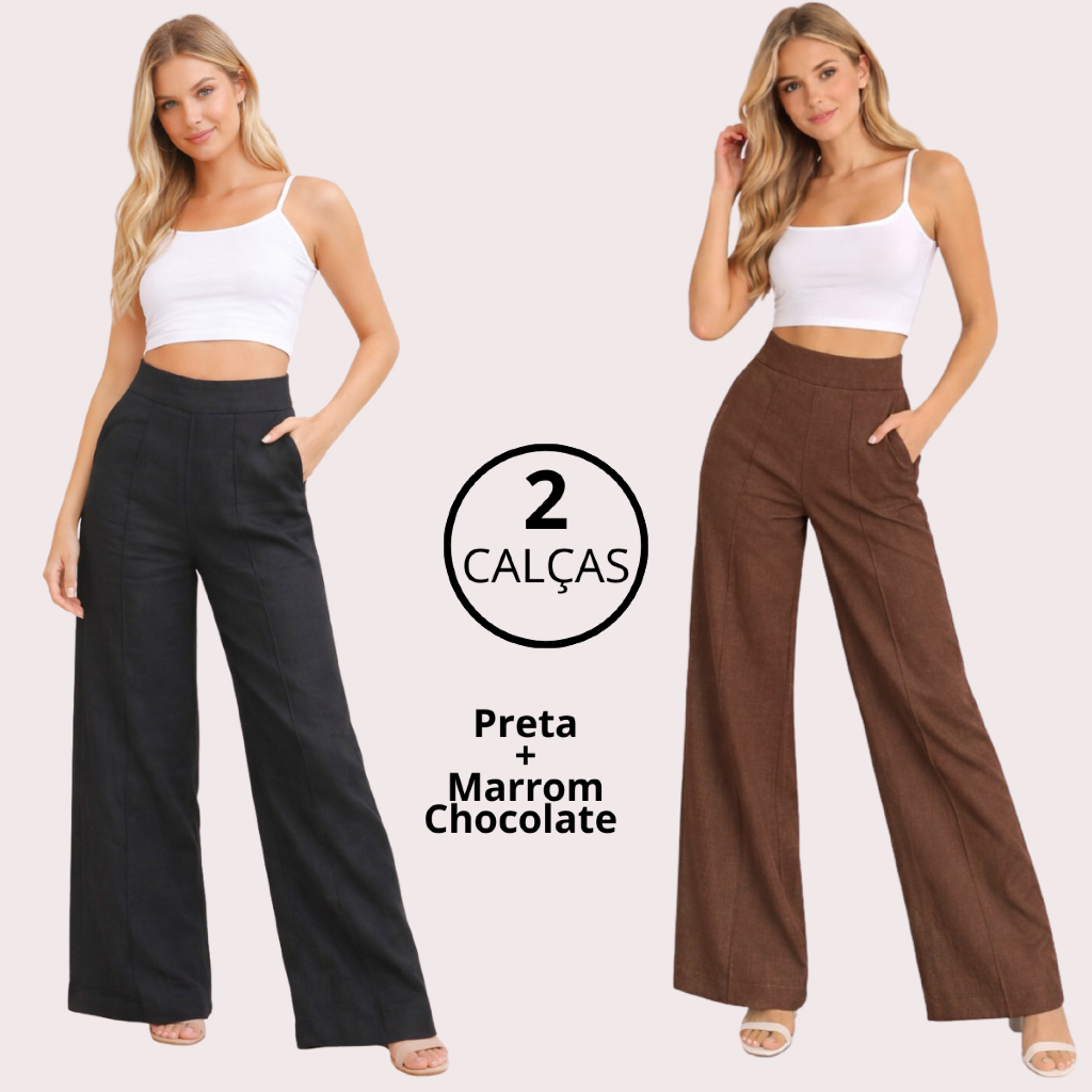 2 Calças Social Pantalona LINHO Cintura Alta Elegante Social, com bolso Premio
