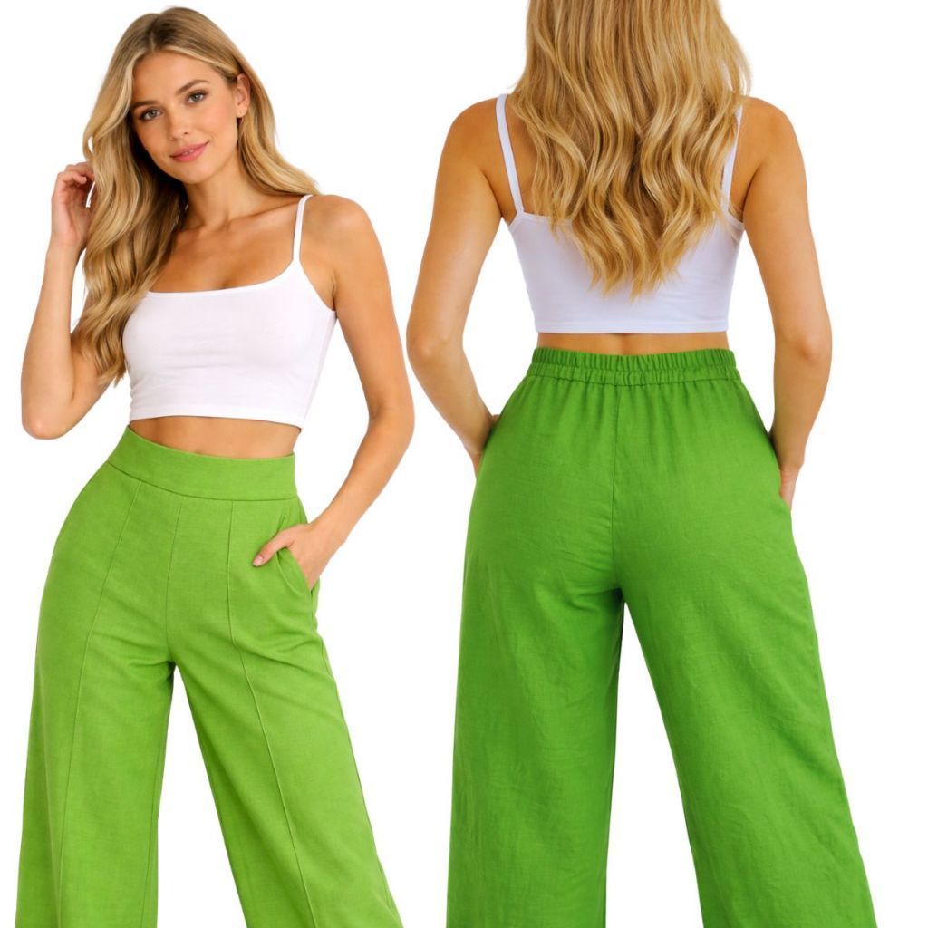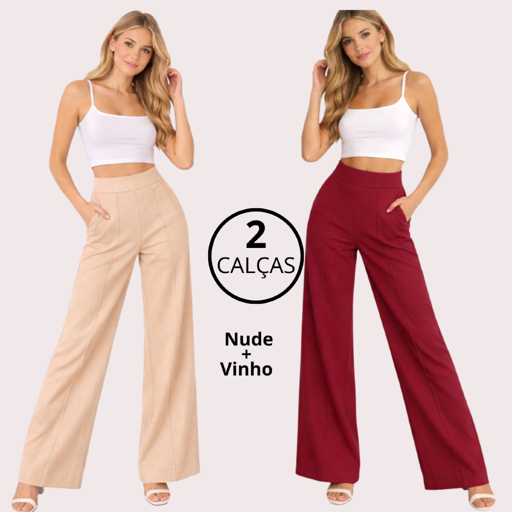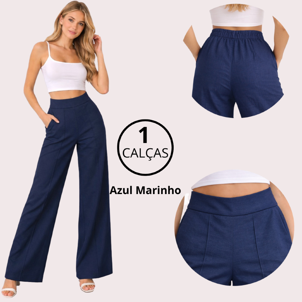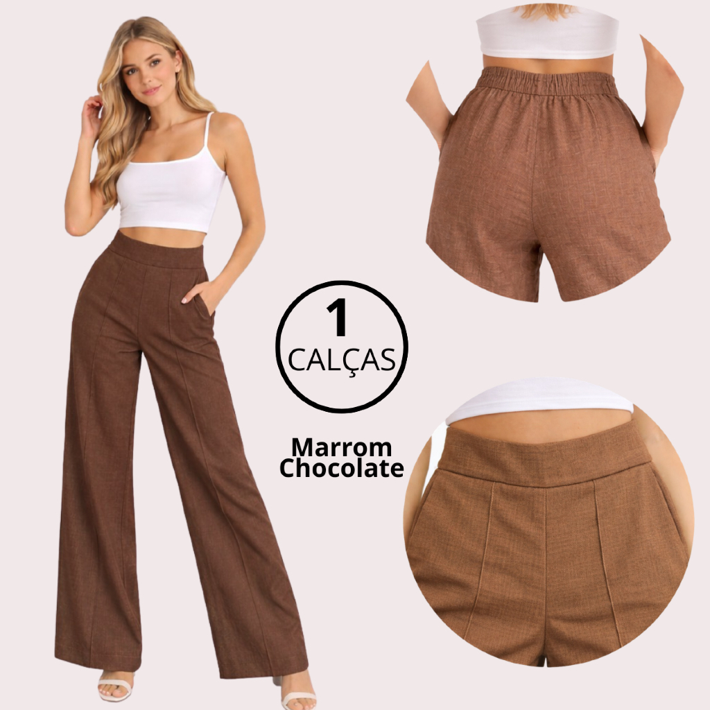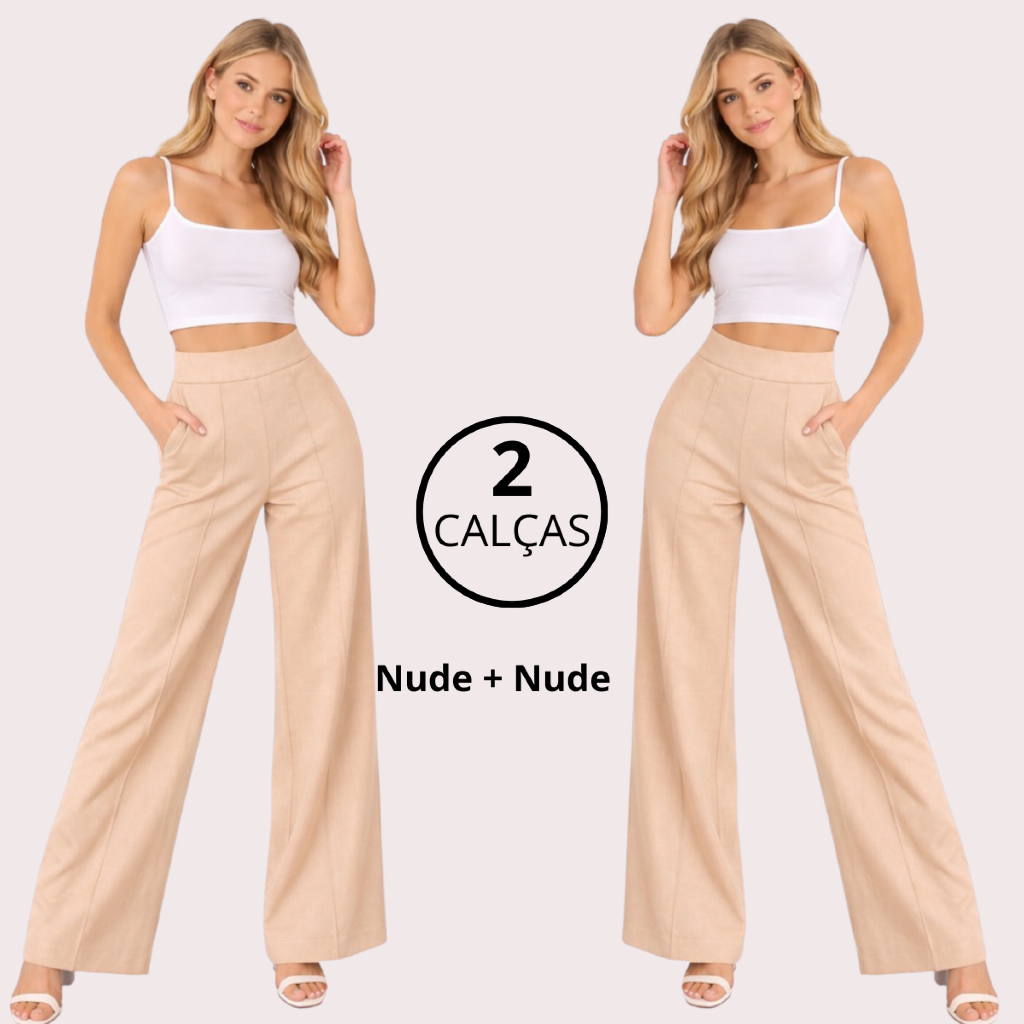 2 Calças Social Pantalona LINHO Cintura Alta Elegante Social, com bolso Premio