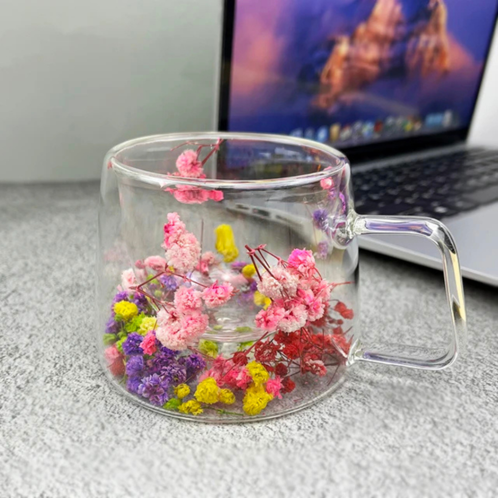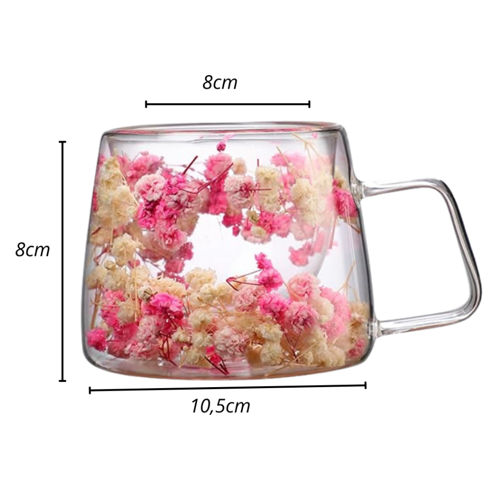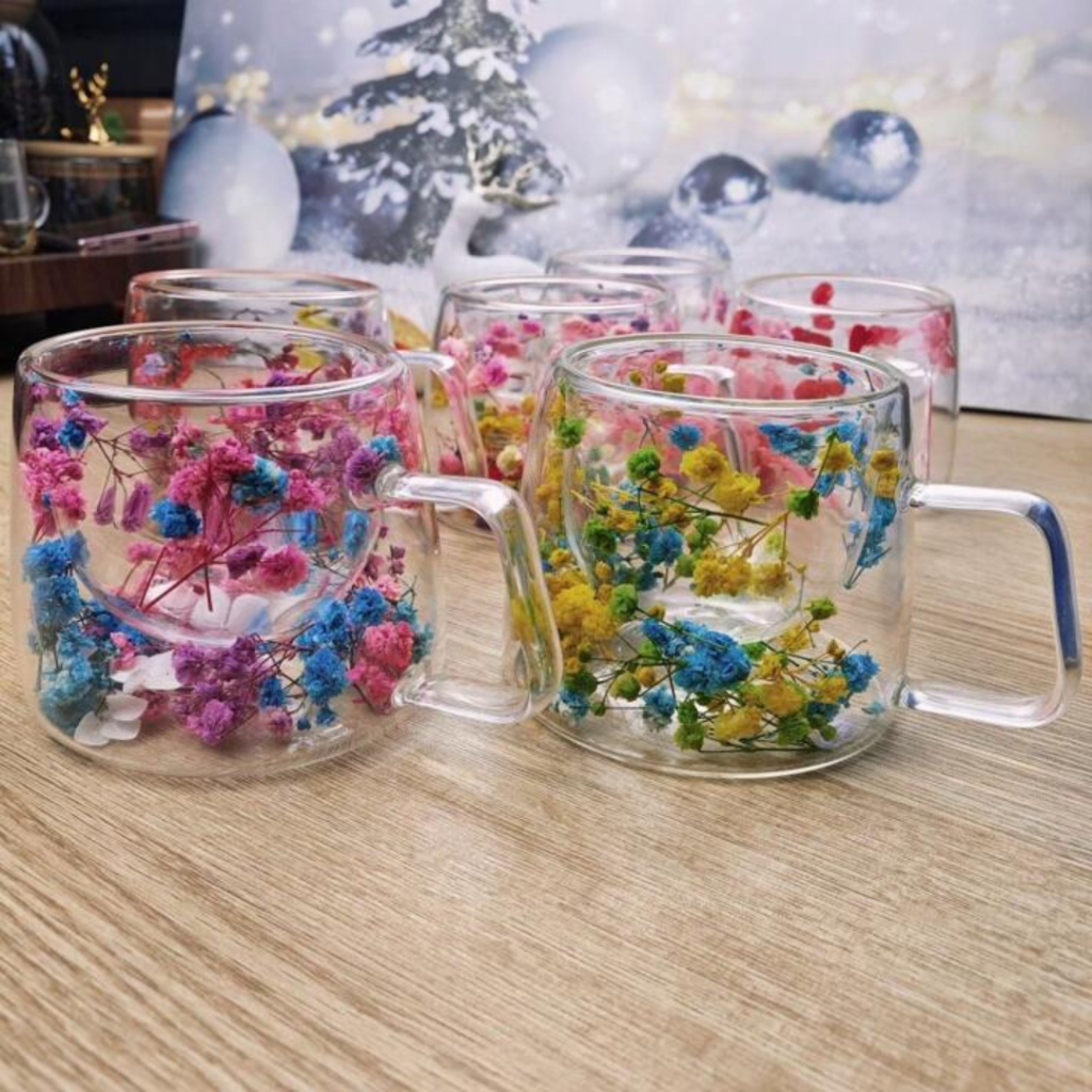 Xícara Parede Dupla de Vidro para cantinho do café flores secas 110ml para Bebidas Café Chá Expresso alça Isolada