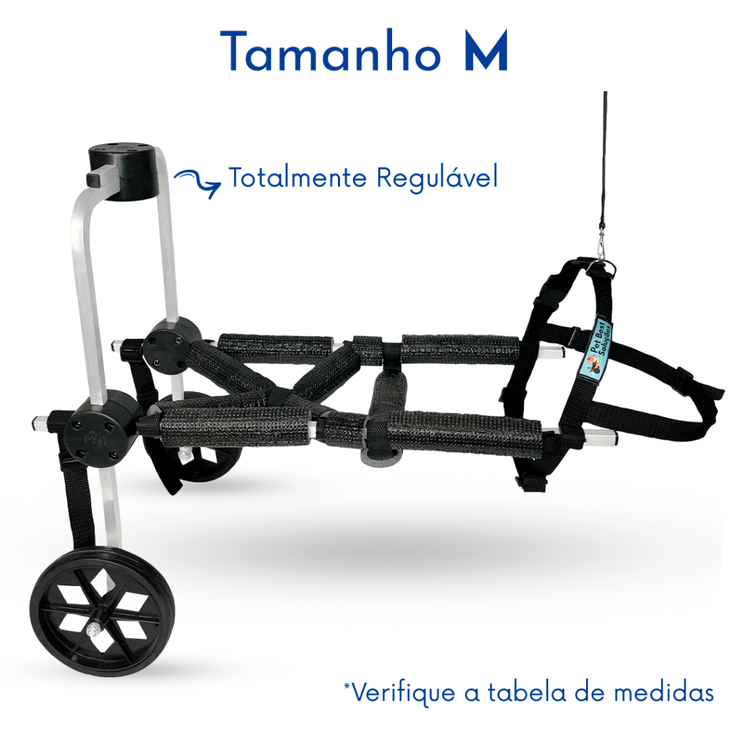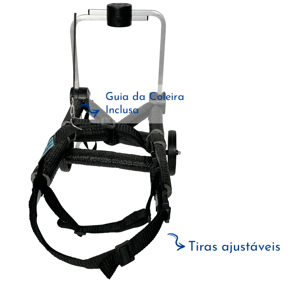 Cadeira De 2 Rodas Cão Cachorro Tam M Médio Pata Traseira Preto Regulável Coleira Pet Best Soluções