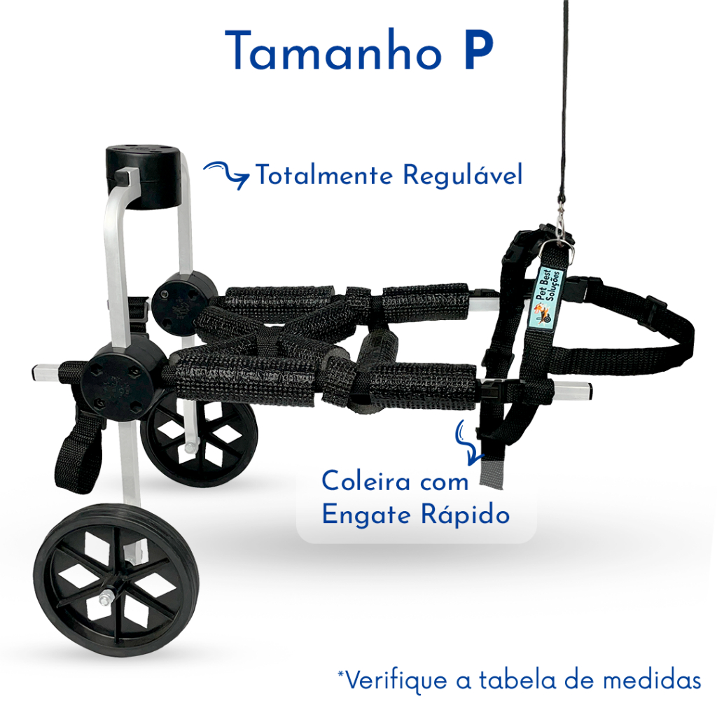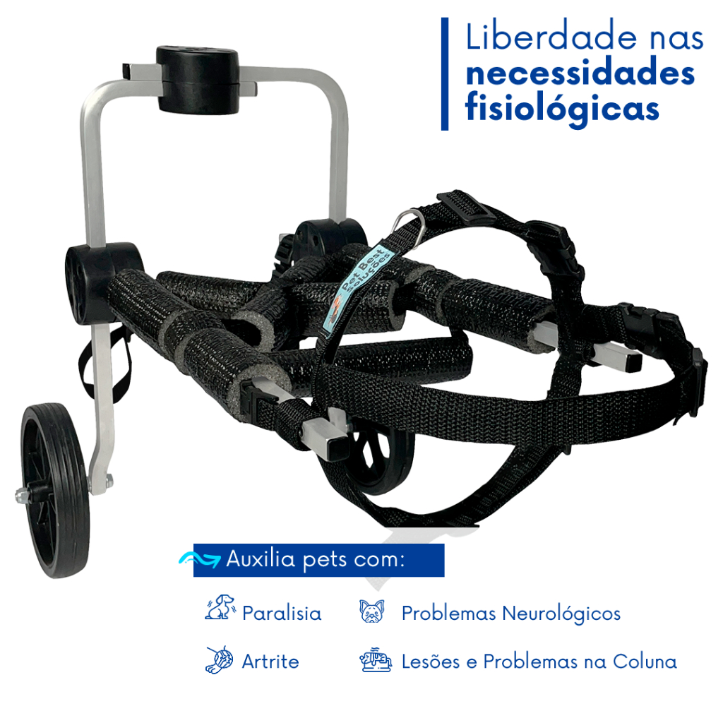 Cadeira De 2 Rodas Cão Cachorro Pequeno Tam P Pata Traseira Preto Regulável Coleira Pet Best Soluções