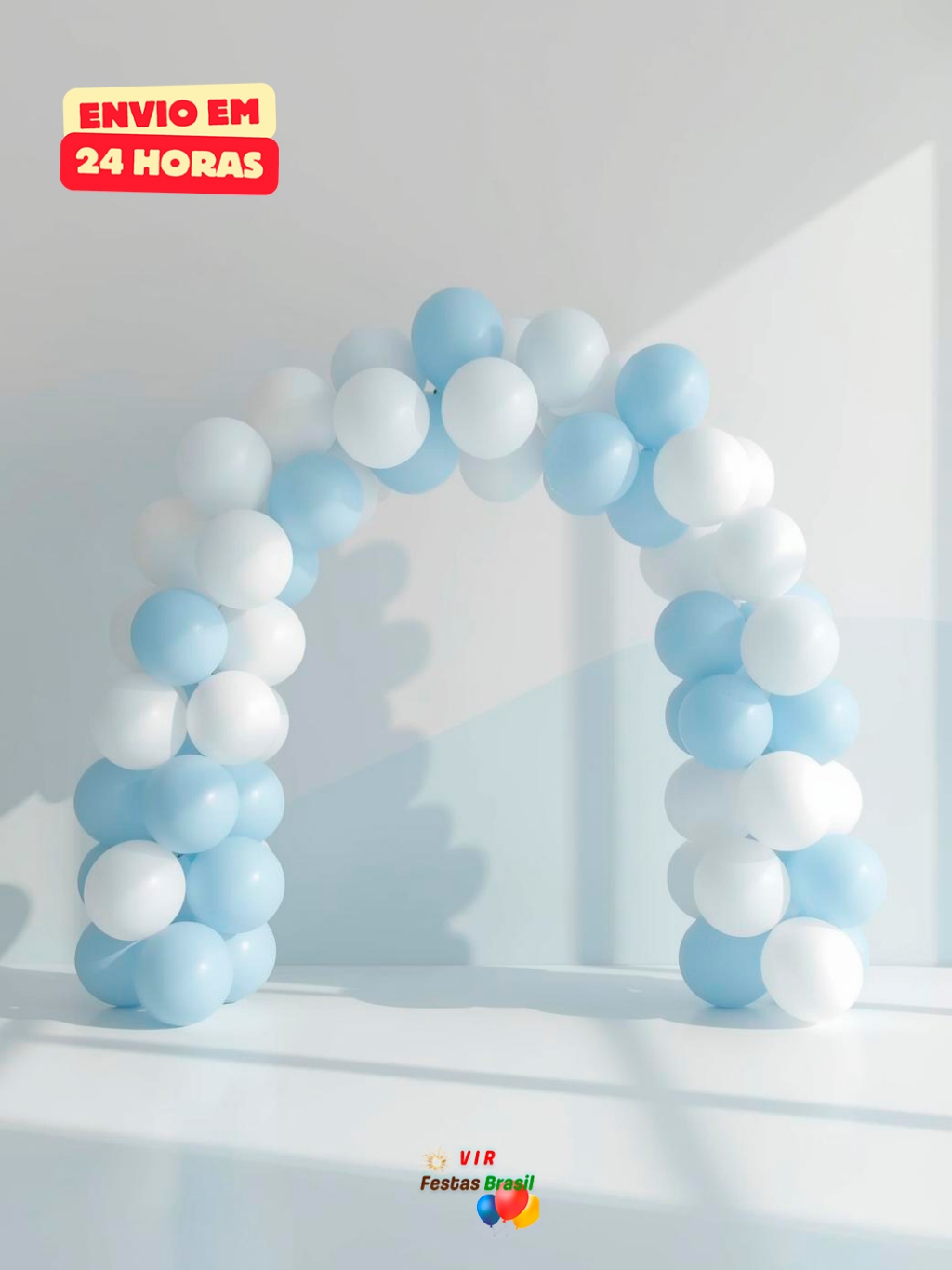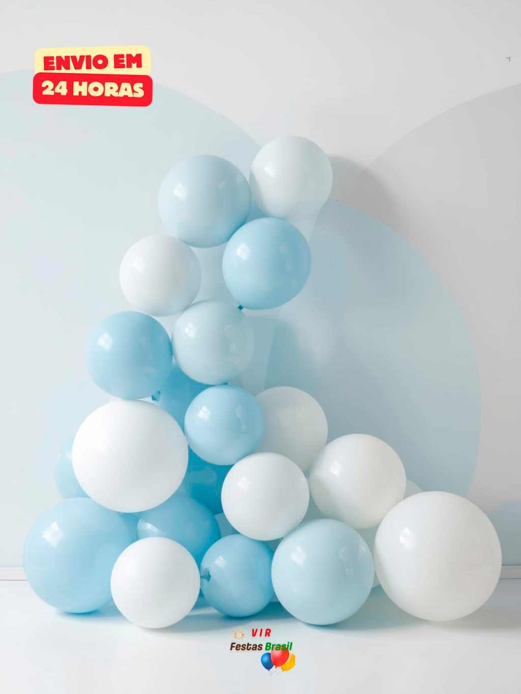 Kit 100 Balões Látex 6,5” Azul Claro e Branco Decoração Festas Aniversários Revelação Bebê