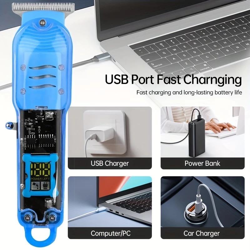 Máquina De Cortar Cabelo Profissional Smart Lcd Barbeador Elétrico Transparente Sem Fio Para Homens