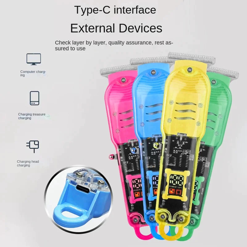 Máquina De Cortar Cabelo Profissional Smart Lcd Barbeador Elétrico Transparente Sem Fio Para Homens