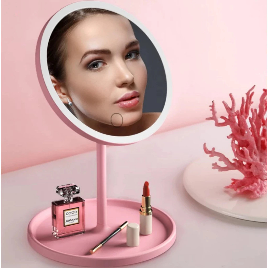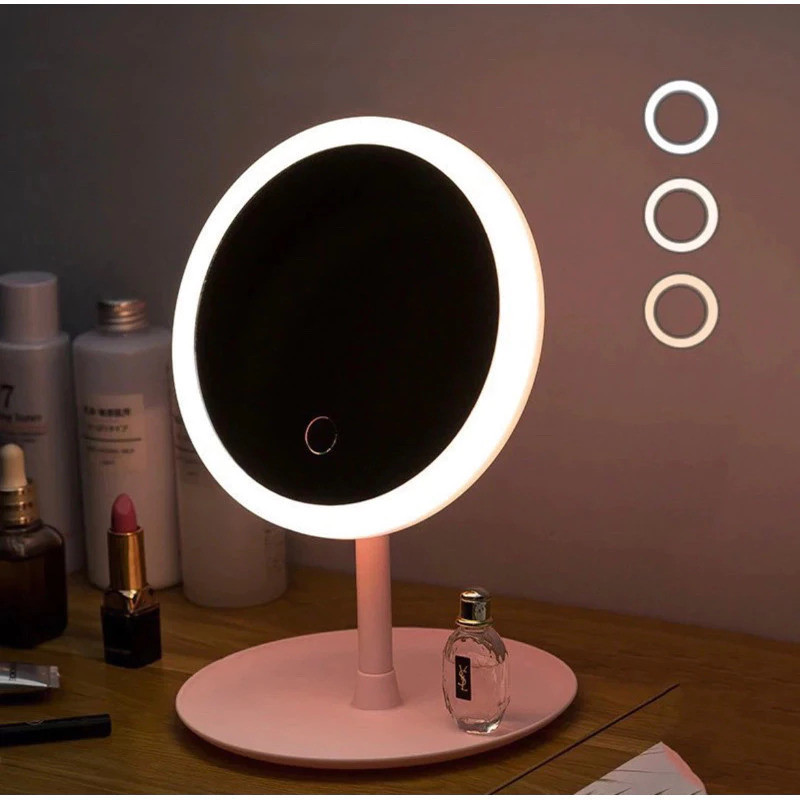 Espelho de mesa retangular para maquiagem com luz de LED 3 modos de cores