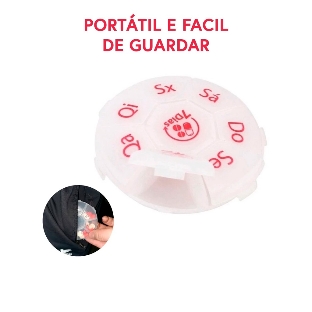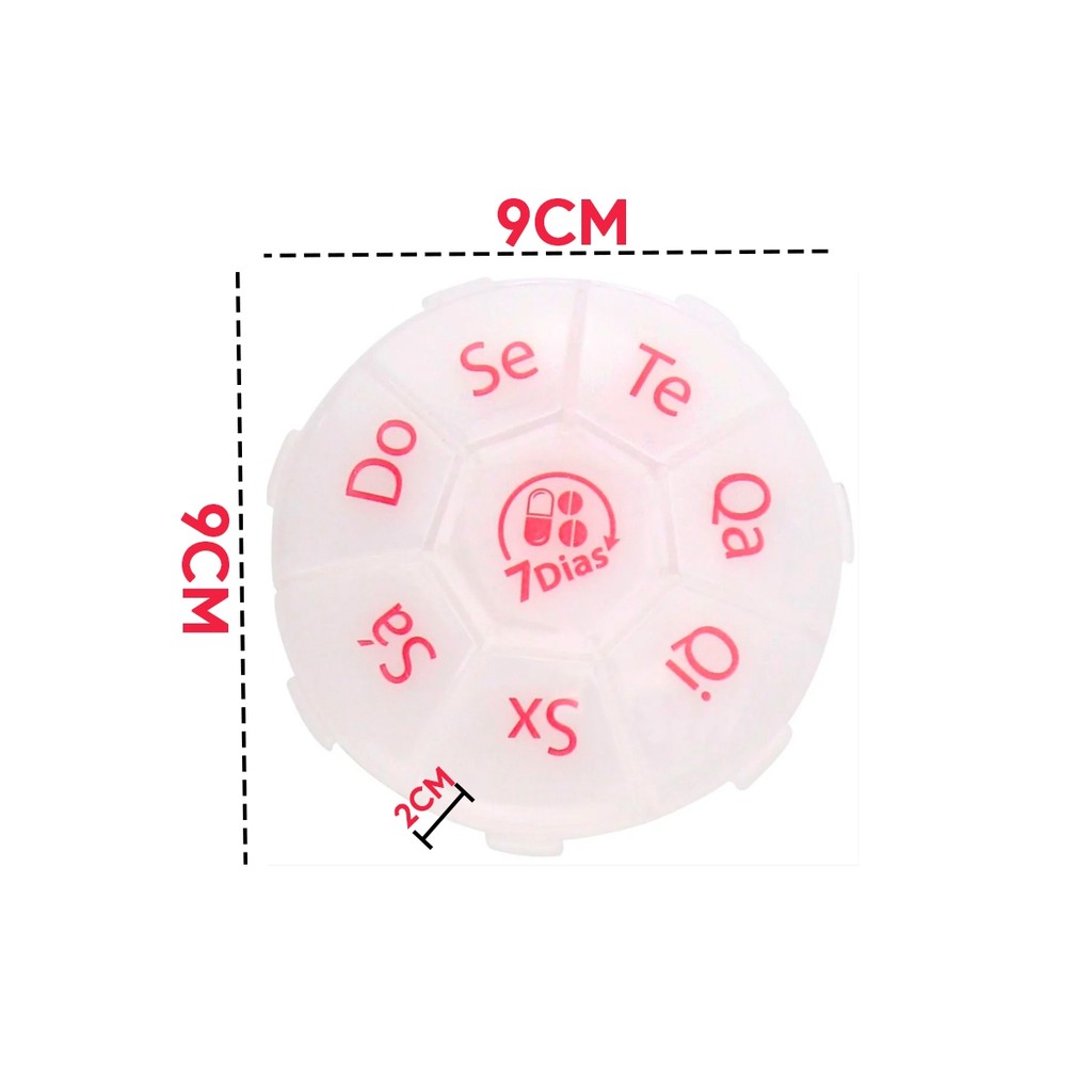 Porta Comprimido Organizador Semanal Multiuso 7 Dias Redondo Portátil