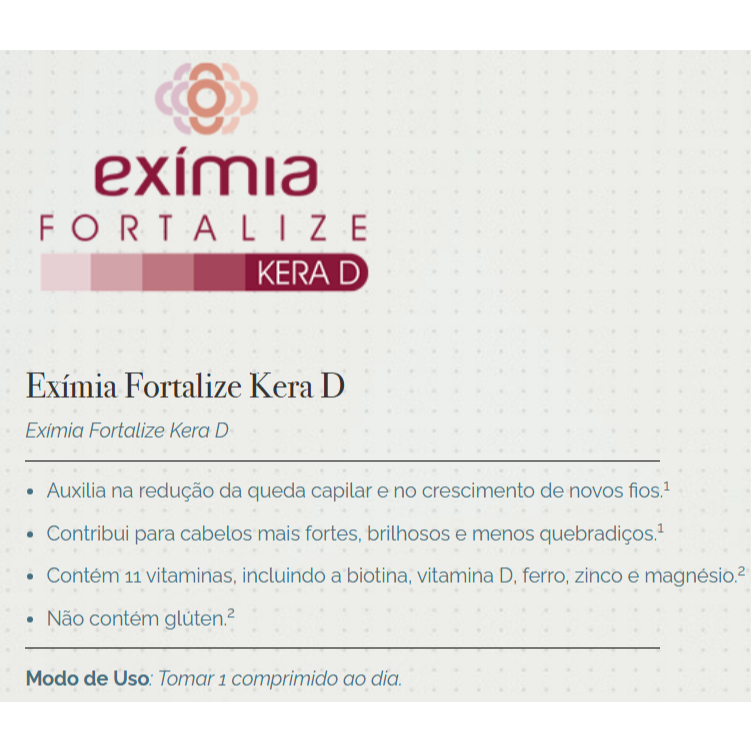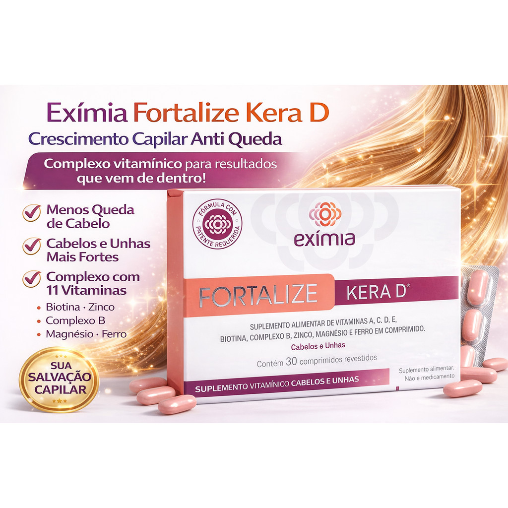 Exímia Fortalize Kera D Crescimento Capilar Anti Queda Cabelo Unhas 30 Comp
