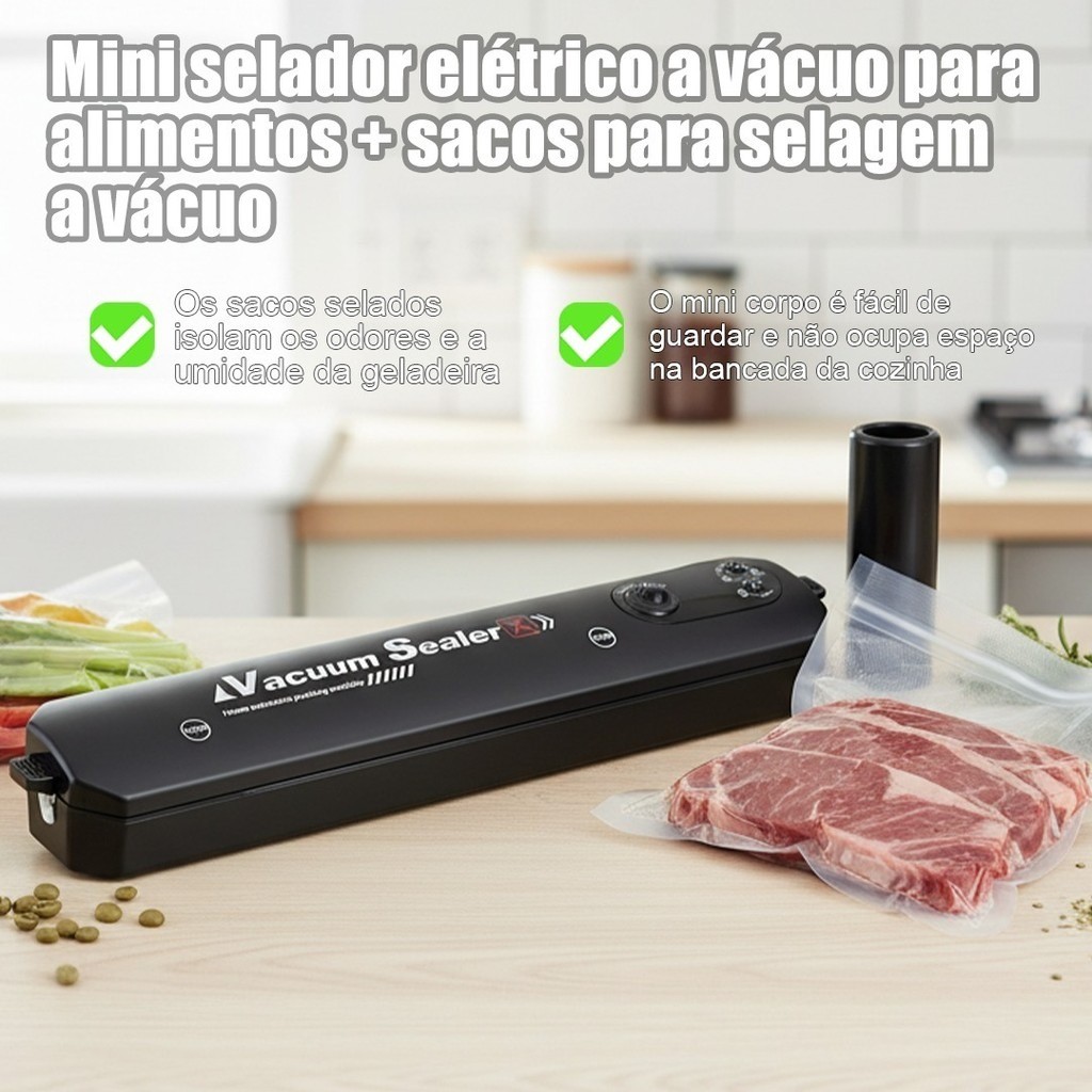 Seladora a Vácuo Doméstica 110V/220V com Sacos Grátis Vedação Rápida e Potente