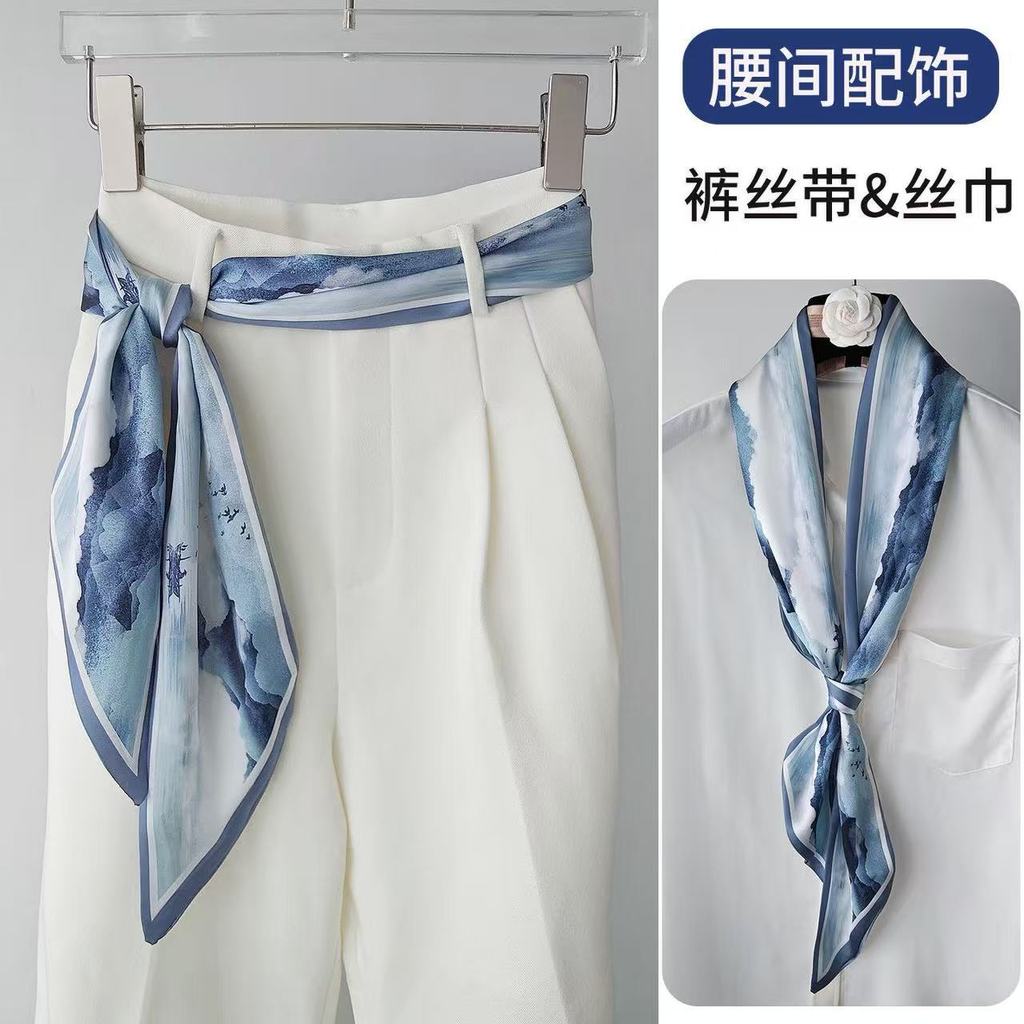 Cinto longo tira pequeno lenço de seda feminino bandana All-Match High-End estilo fino combinando camisa fita gravata pe