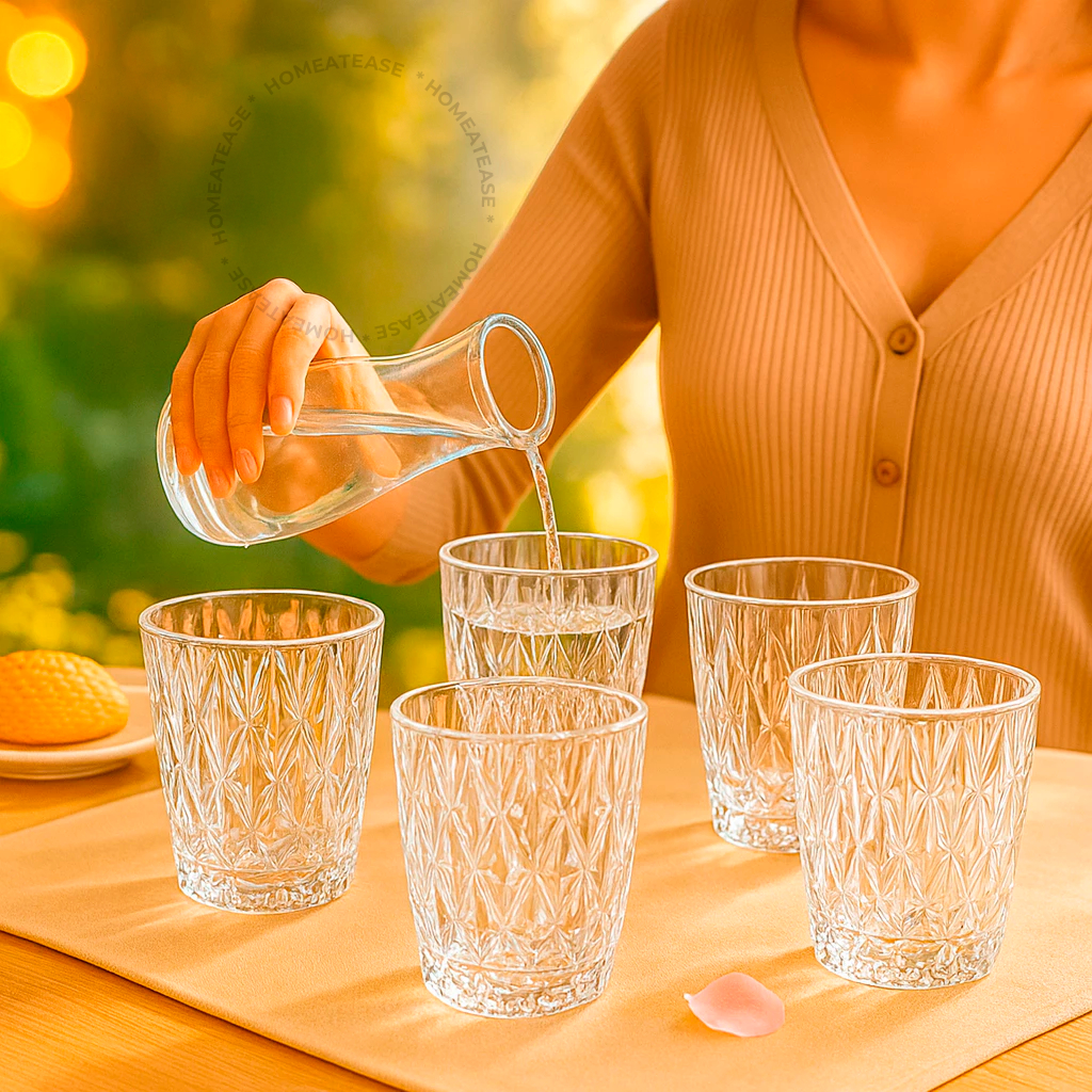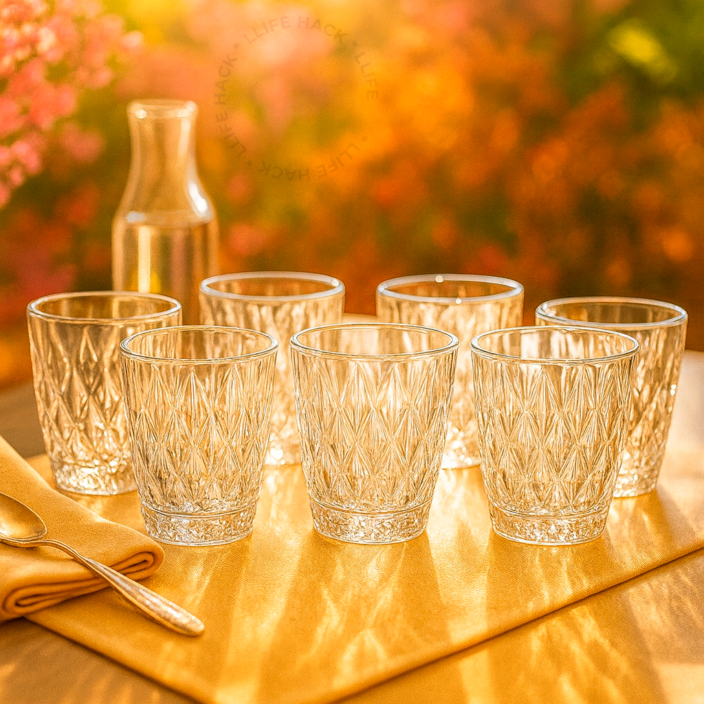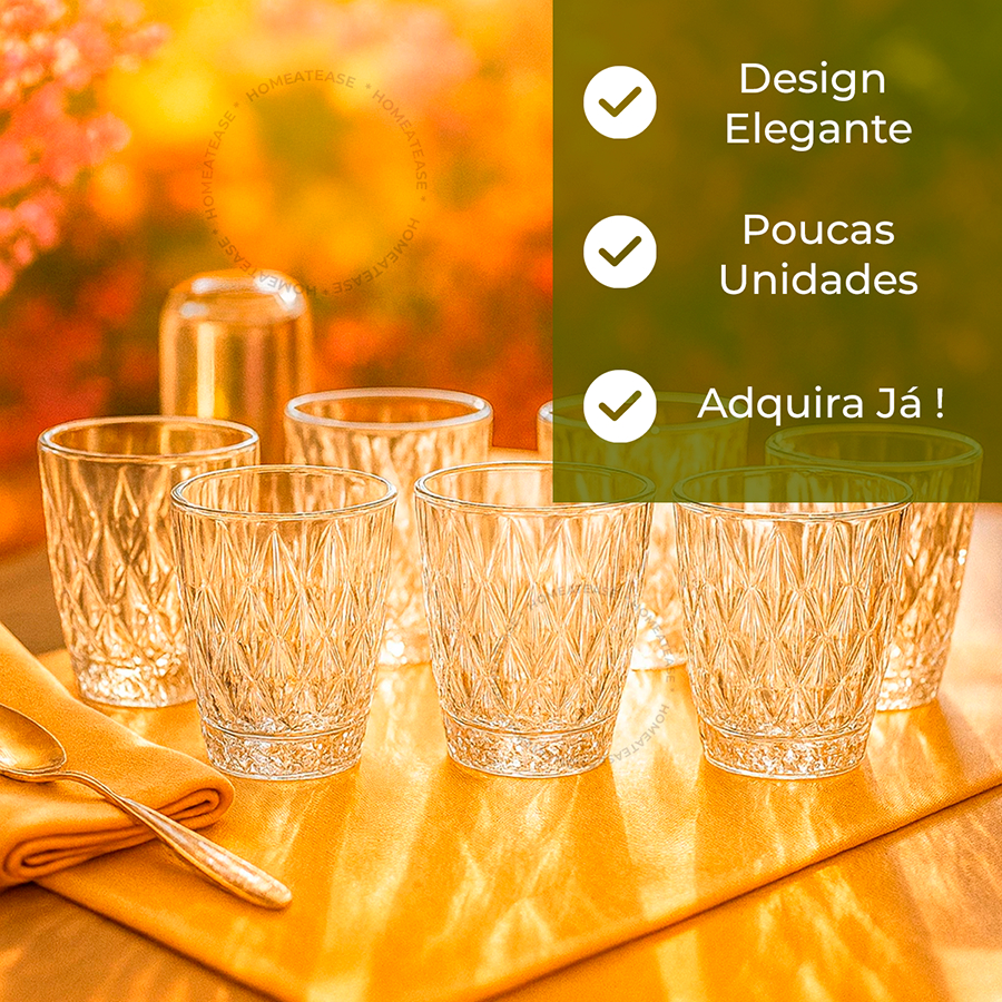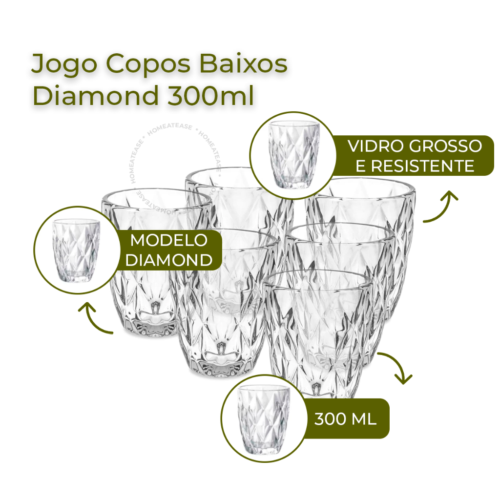 Jogo 6 Copos Baixos Diamond 300ml Vidro Grosso Diamante Luxo