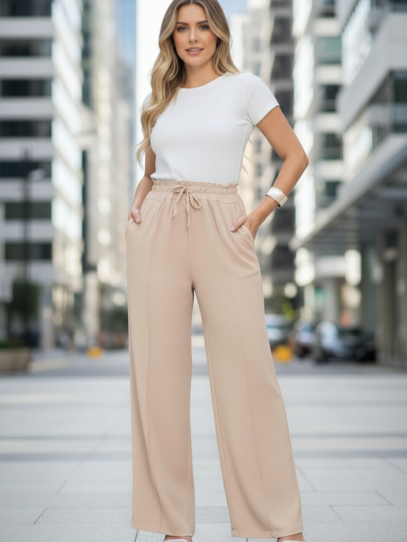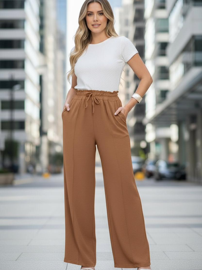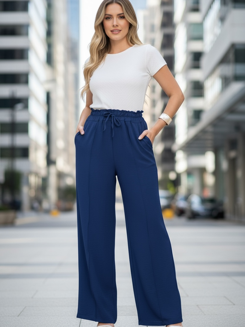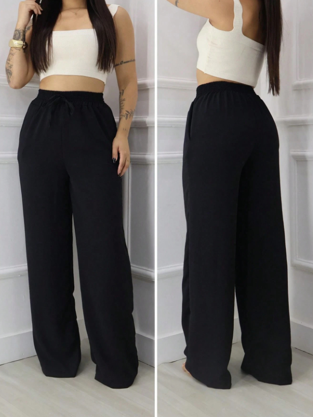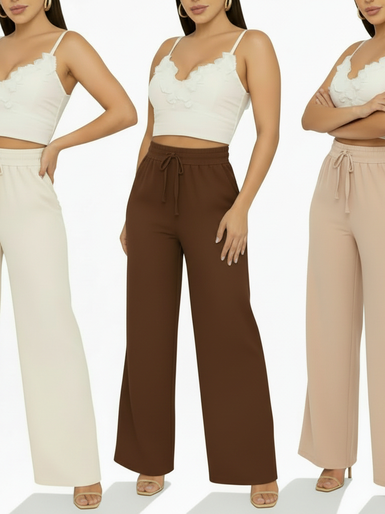 Kit 1 a 3 Calça Pantalona Feminina Cintura Alta Com Bolso Tecido Duna Tendencia