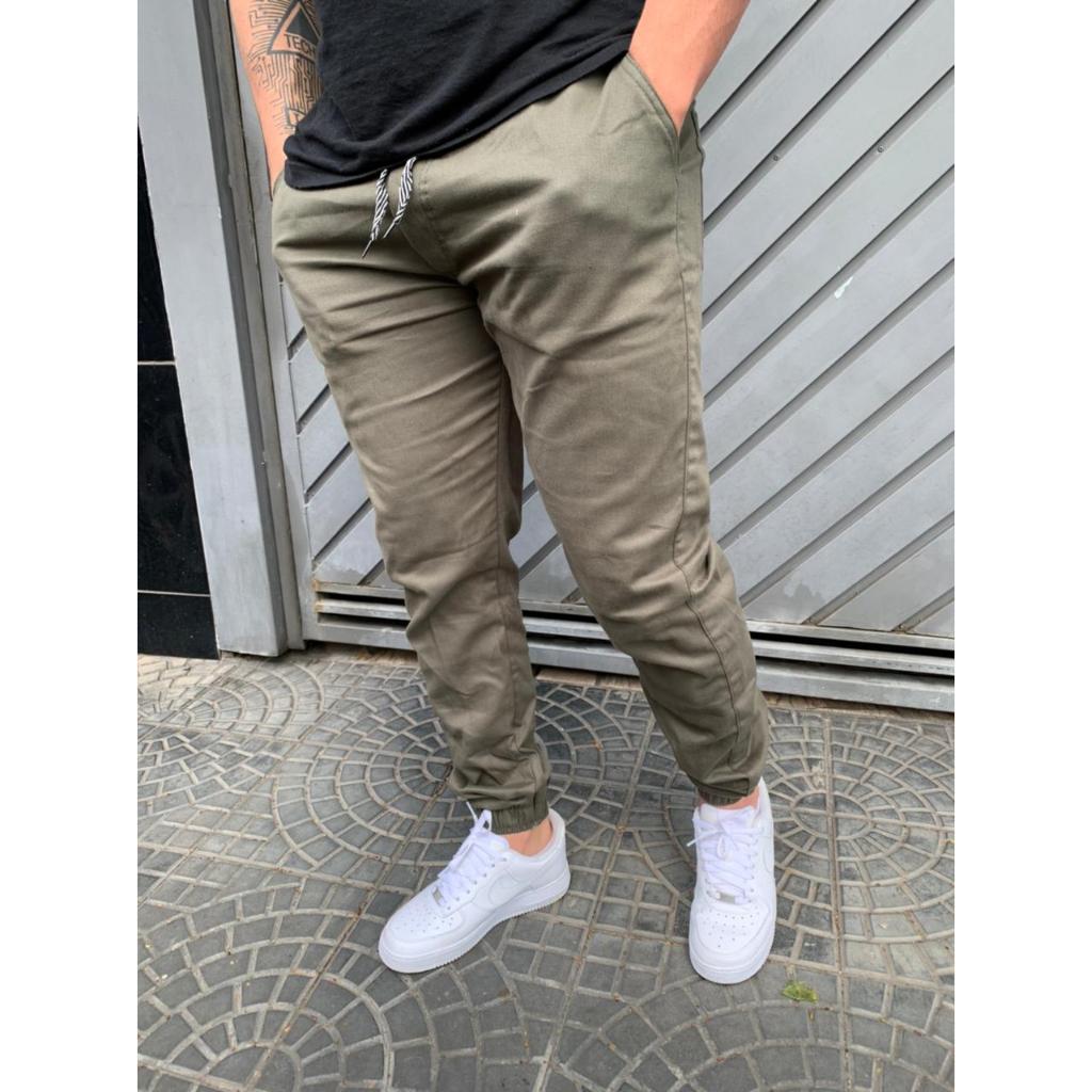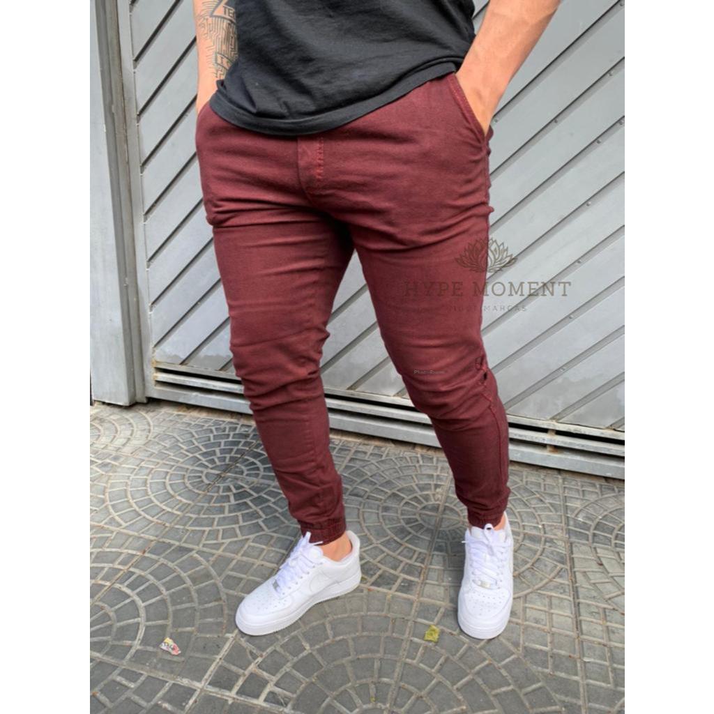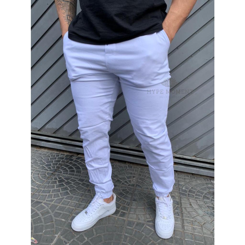 Calça Bege Jogger Masculina Sarja com Elastano Promoção Black Friday