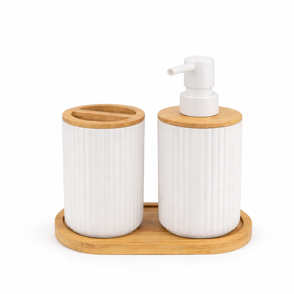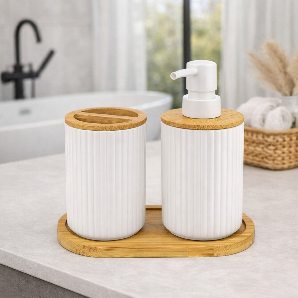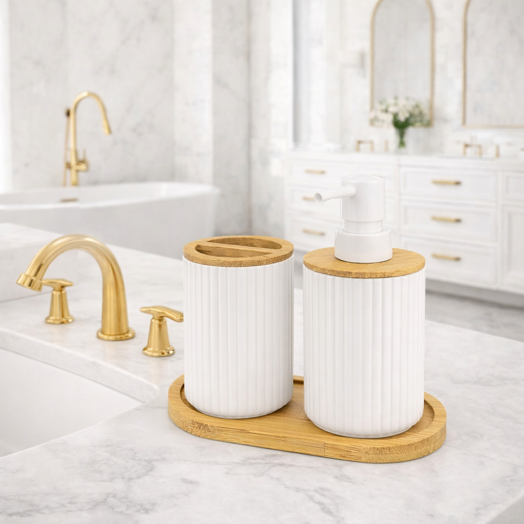 Kit Lavabo Preto 3 Peças com Bandeja de Bambu Porta Sabonete e Porta Escova ENVIO IMEDIATO