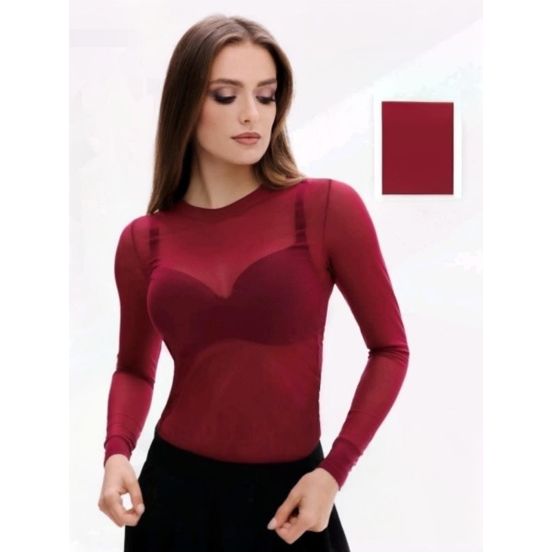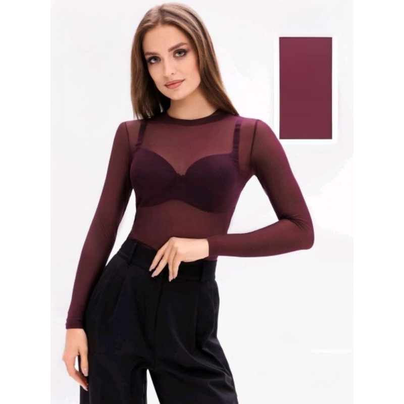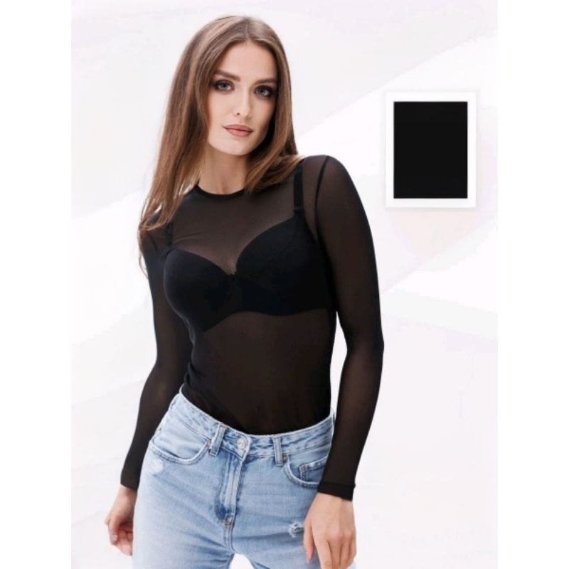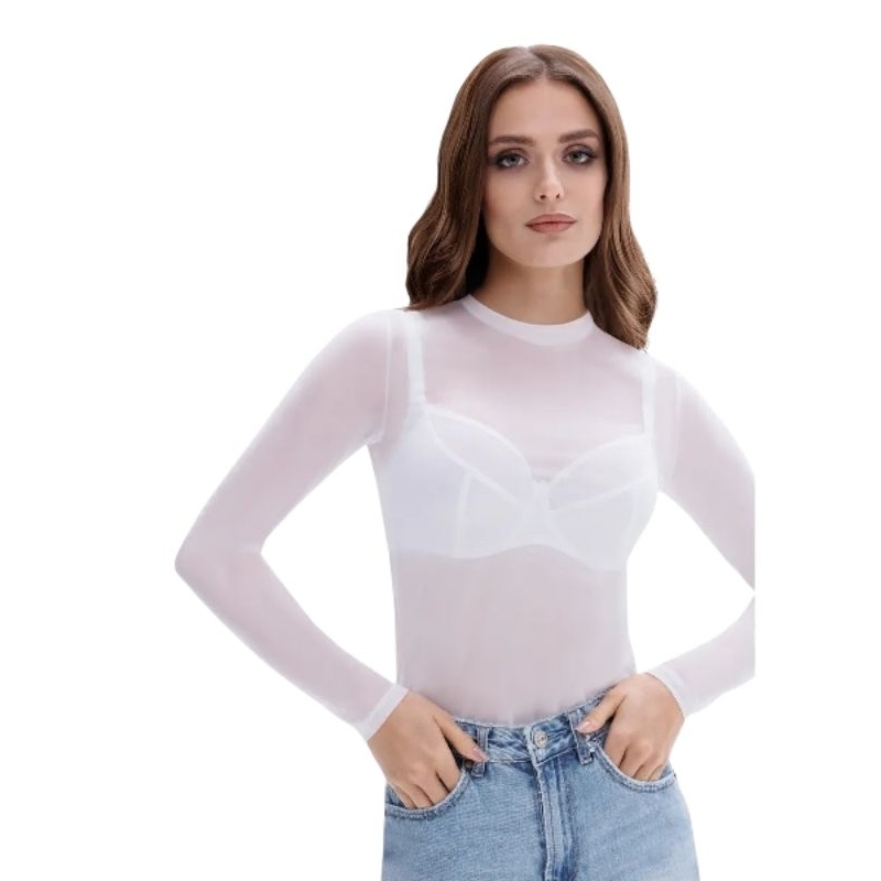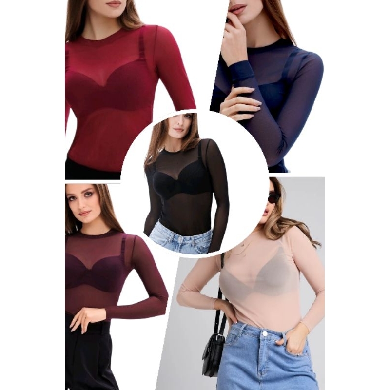 Body de Tule Liso Transparente Feminino Manga Longa Tamanho Único 36 ao 42 Cores Preto, Branco Vinho Azul Marinho e Bege
