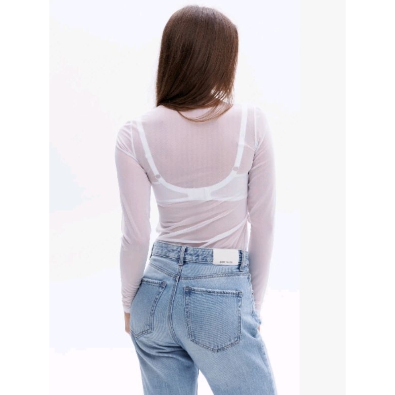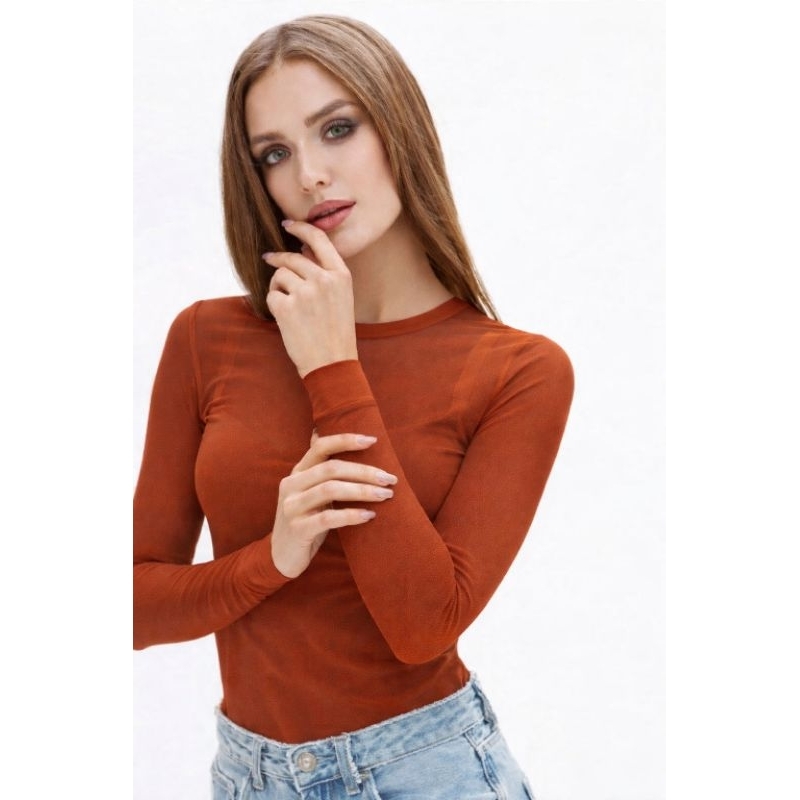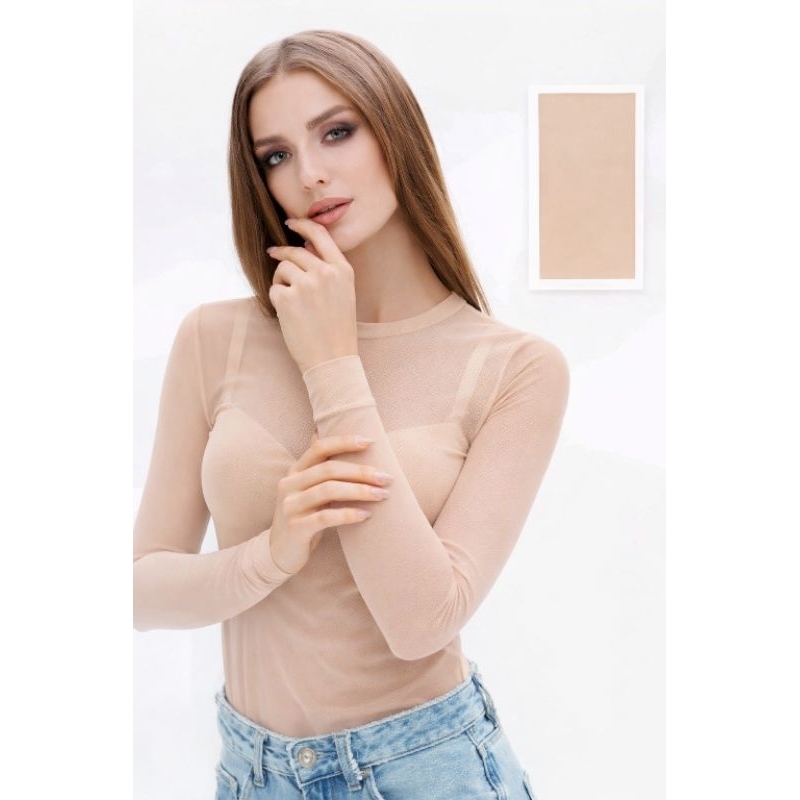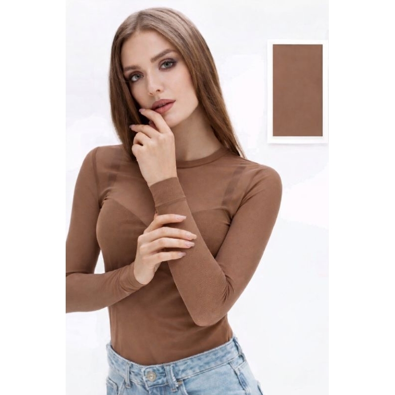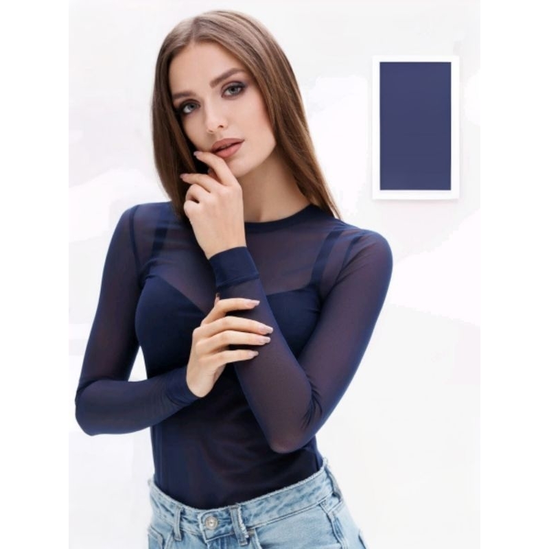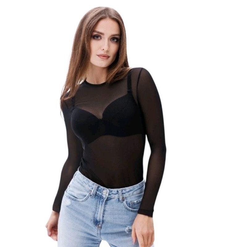 Body de Tule Liso Transparente Feminino Manga Longa Tamanho Único 36 ao 42 Cores Preto, Branco Vinho Azul Marinho e Bege