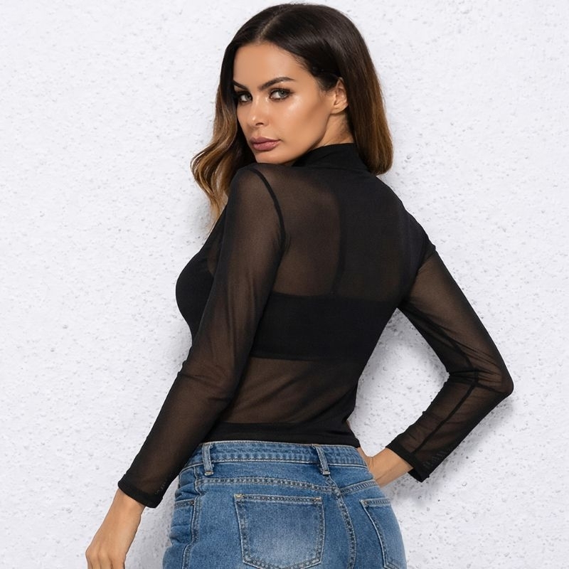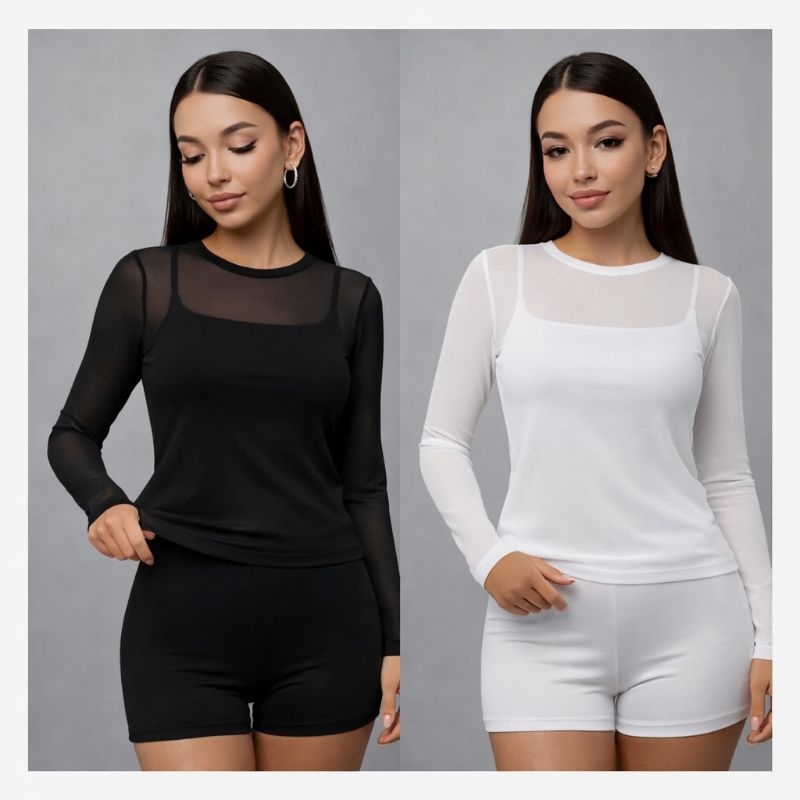 Blusa de Tule Transparente Manga Longa (Preta ou Branca) | Efeito Segunda Pele | Tam Único 36-42 Alta Elasticidade