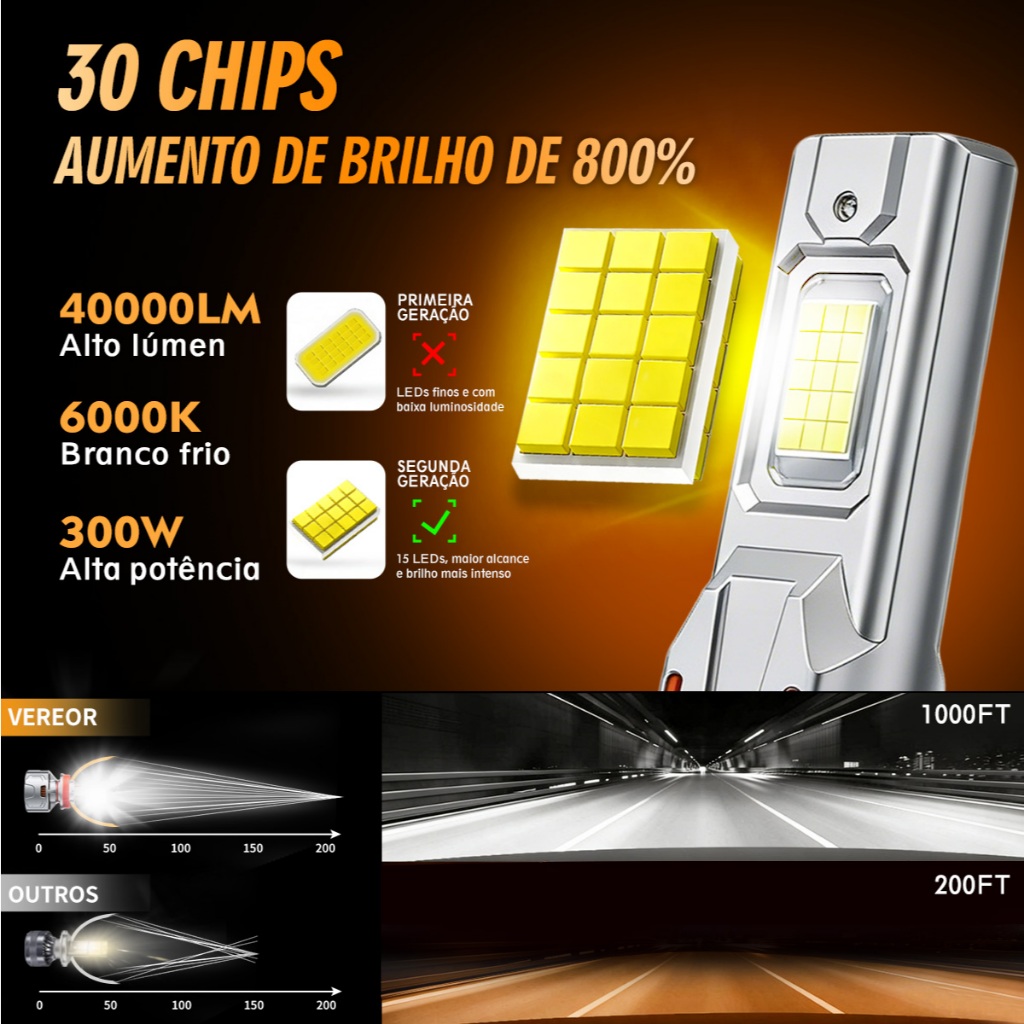 Lâmpada LED para Farol X12 Para 300W 40000LM H1 H3 H4 H7 H11 9005 9006 6000K Carro Auto Alta Brilhante