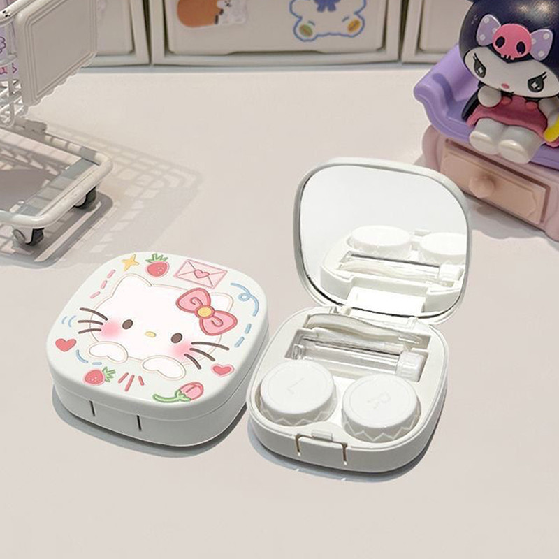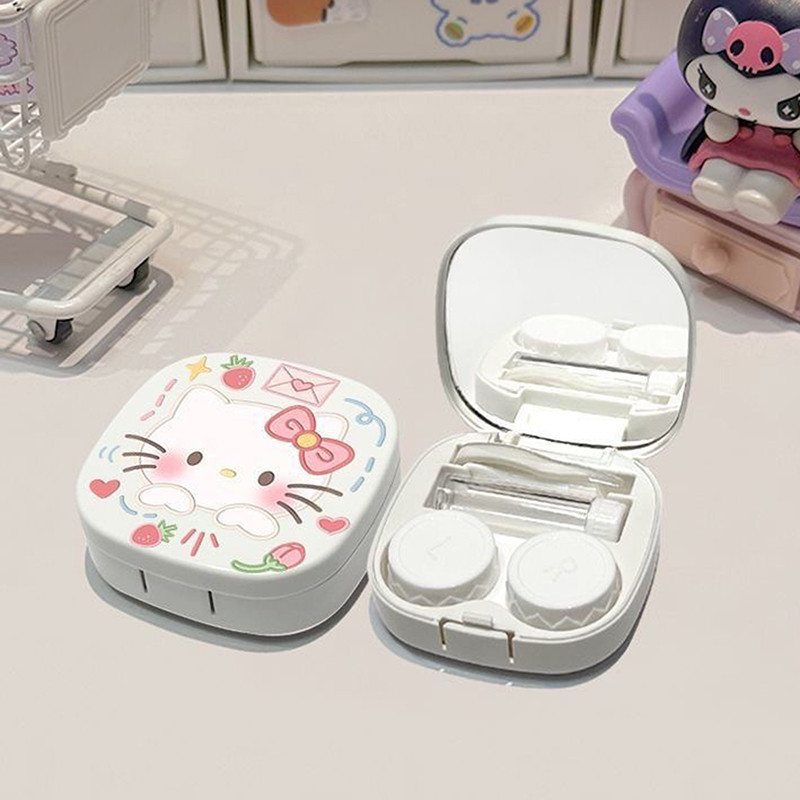 Estojo de Lentes de Contato Kawaii Hello Kitty Sanrio Kt Caixa de Armazenamento