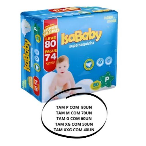 Kit 3 Pacotes - Fralda Isababy Hiper Pctão Econômico tamanhos