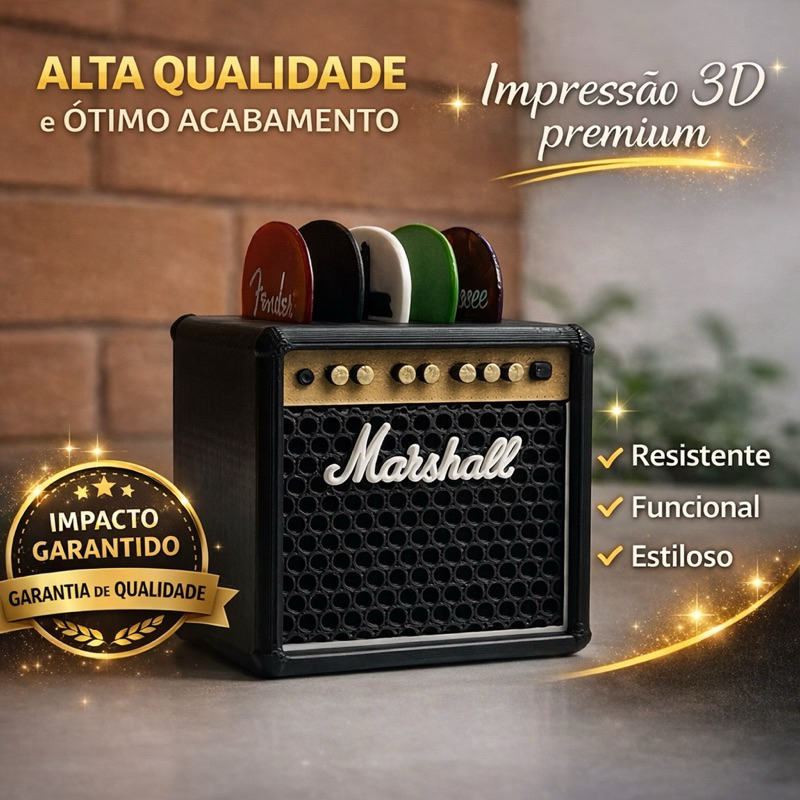 Porta Palhetas Mini Amplificador Estilo Marshall Para Violão Guitarra Baixo