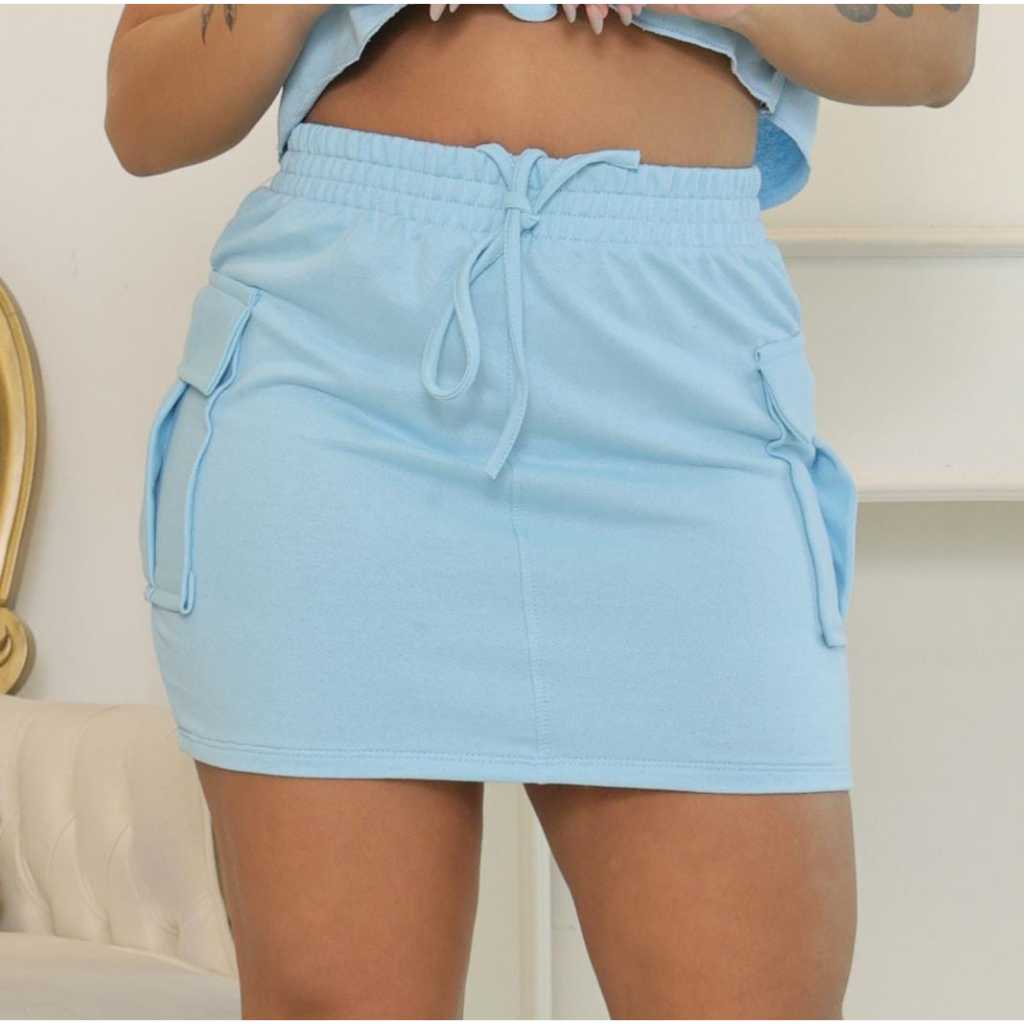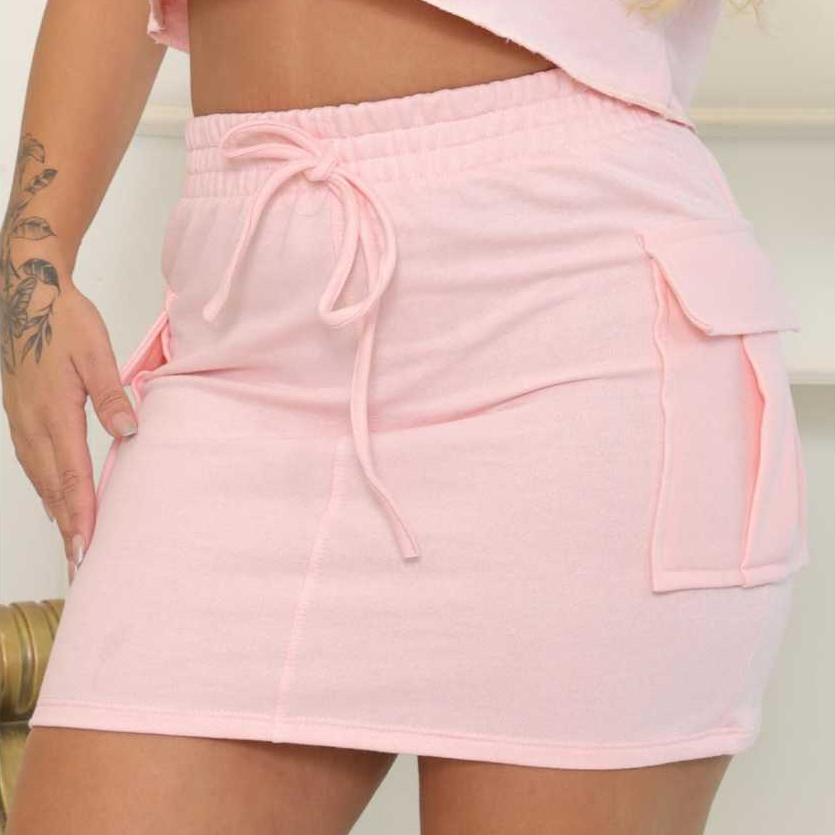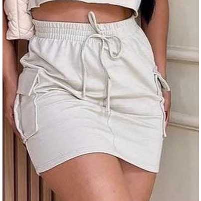 Saia Cargo Feminina Moletom Moletinho Premium Luxo Cintura Alta com Bolsos Confortável verão 2026