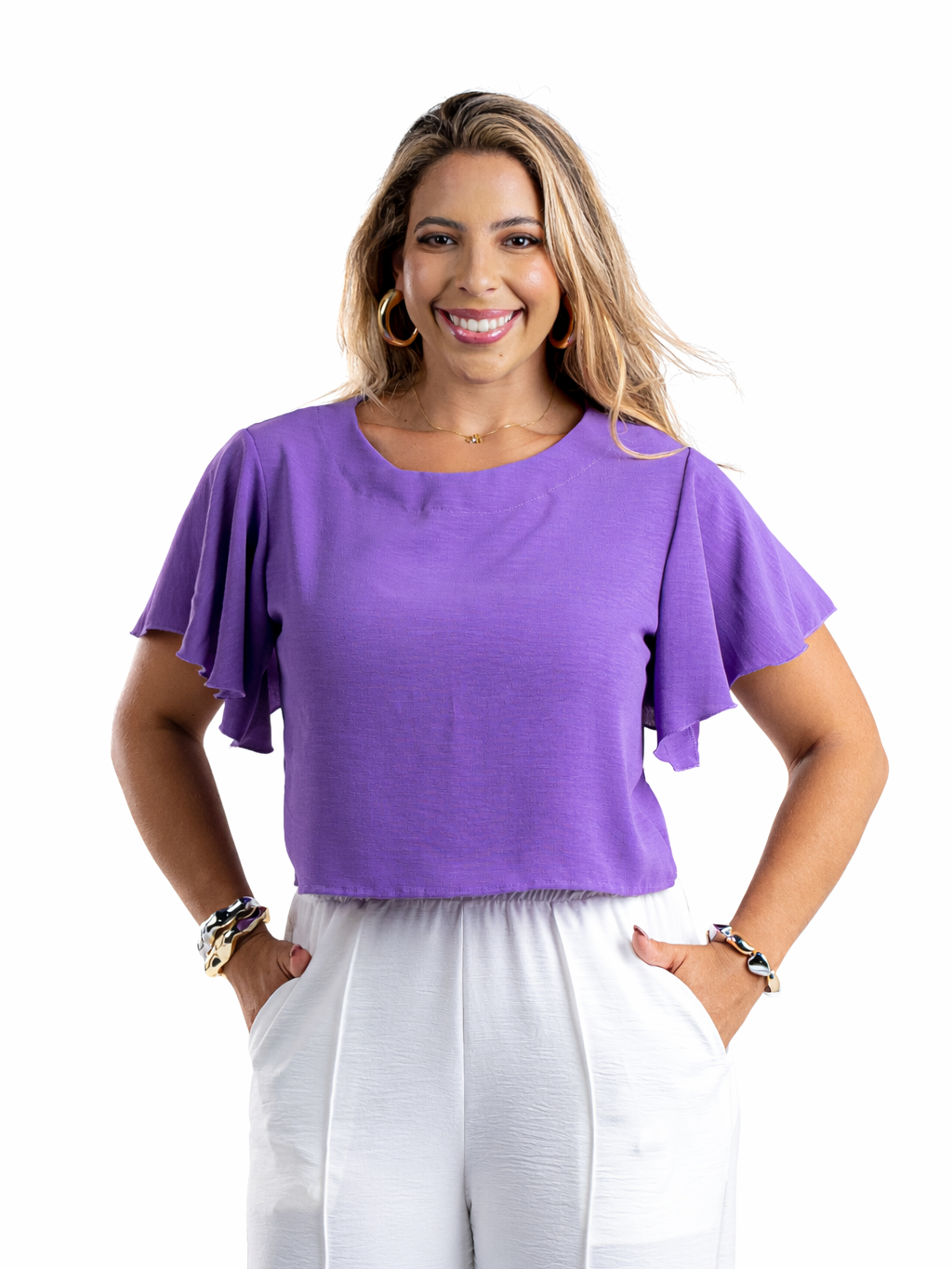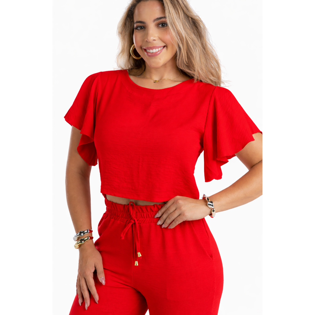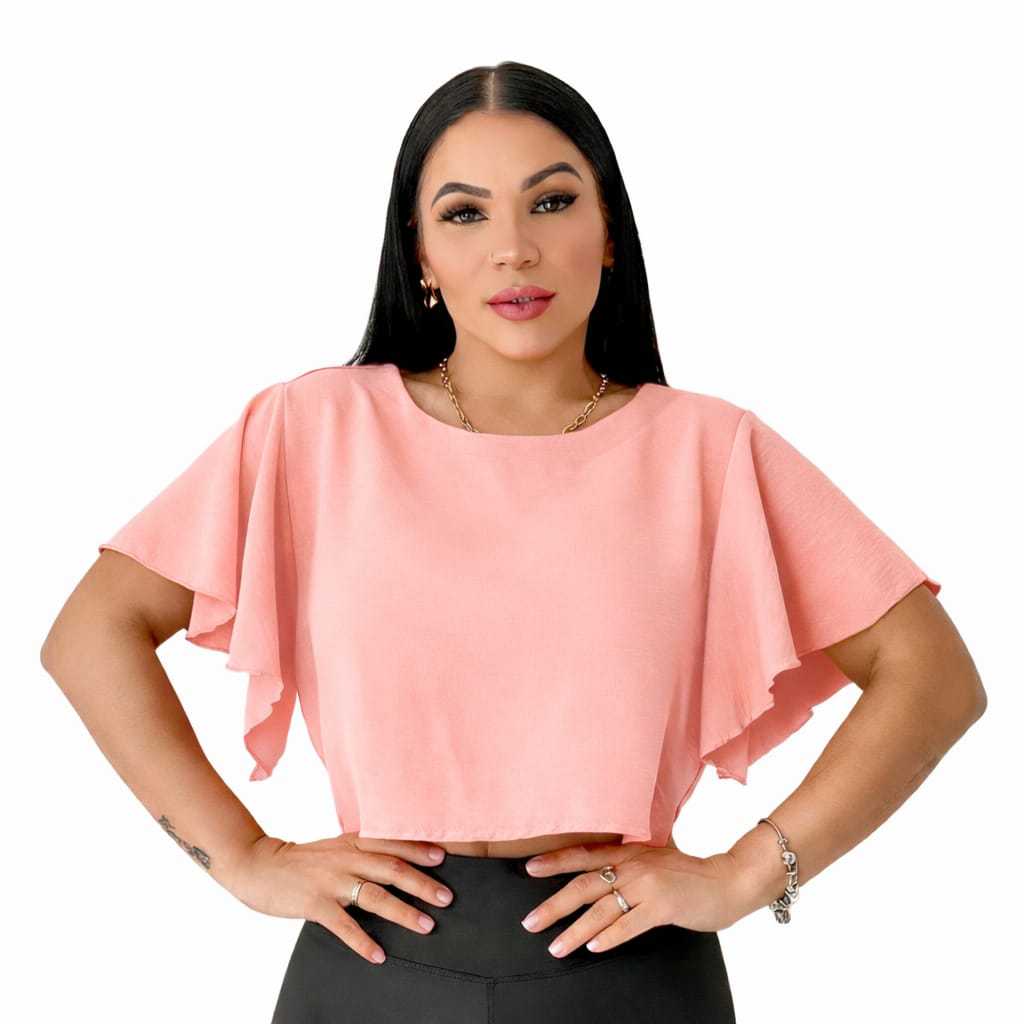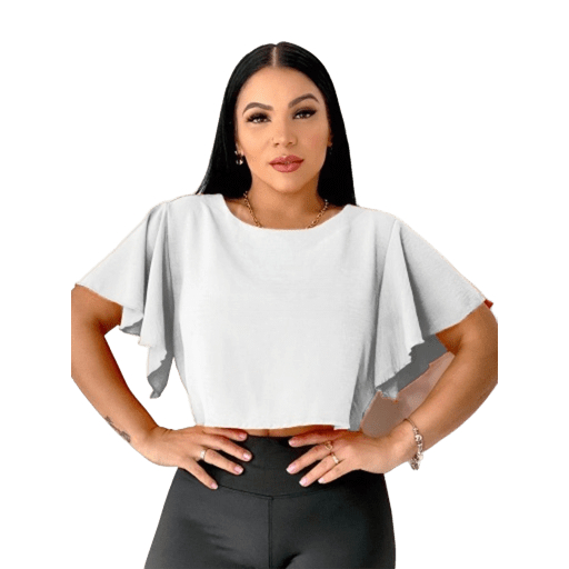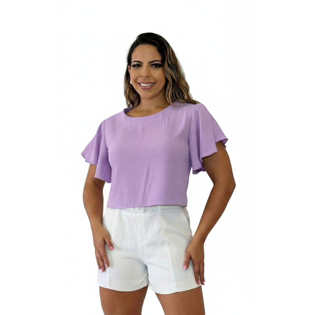 Blusa Cropped Feminina Crepe Dunas Manga Curta T-Shirt Lisa P ao GG