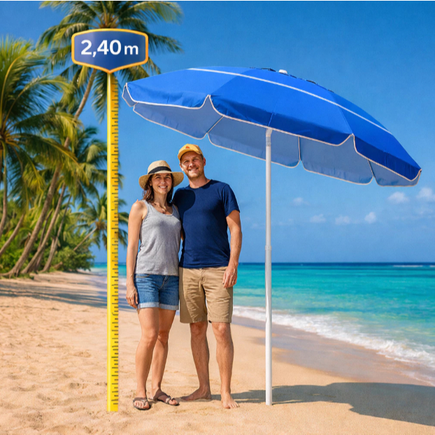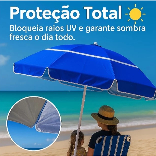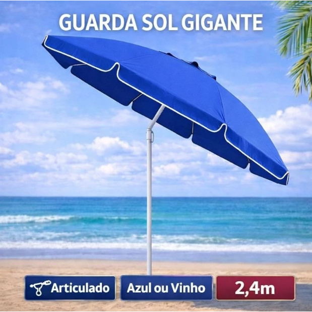 Guarda Sol Gigante Articulado 2,40m Praia Piscina Pesca Proteção UV Verão Respirável Eventos