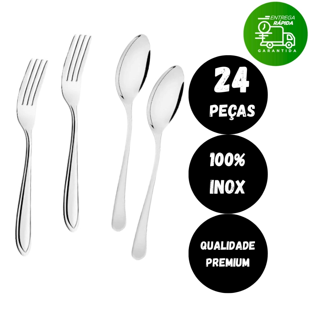Kit 24 Talheres Aço Inox Garfo e Colher Sobremesa Doces Cozinha Restaurante Bares
