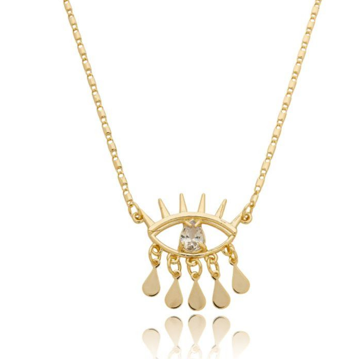 Colar olho grego com zircônia + anel regulável olho grego semijoia a ouro 18k