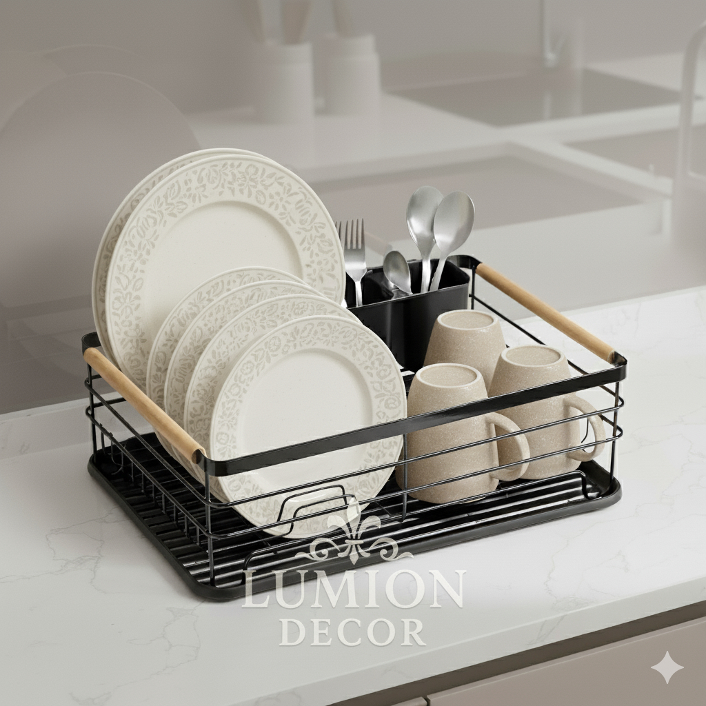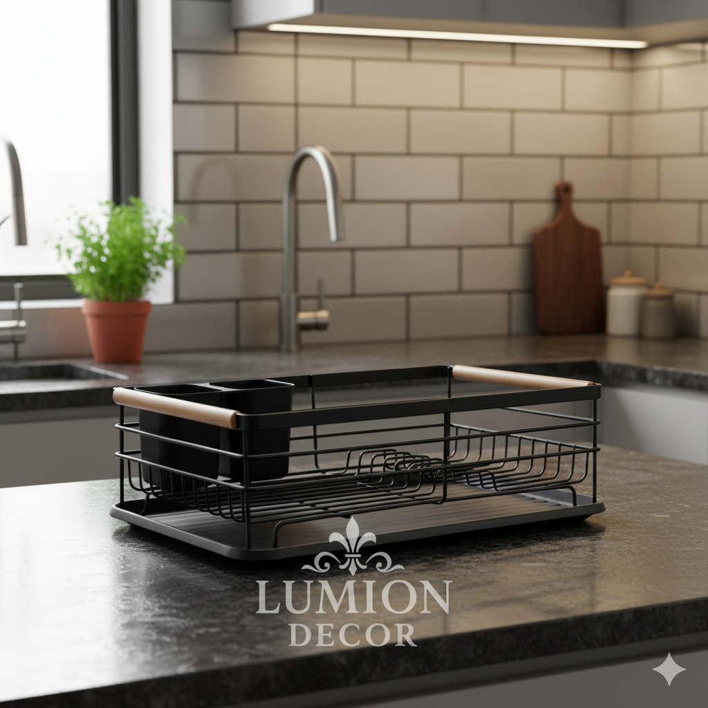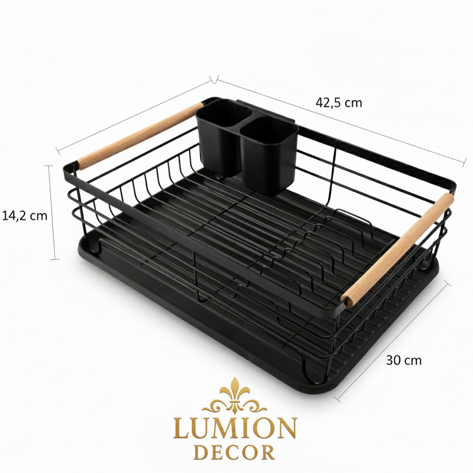 Escorredor De Louça Preto E Madeira Luxo Moderno Para Cozinha Sofisticada E Elegante