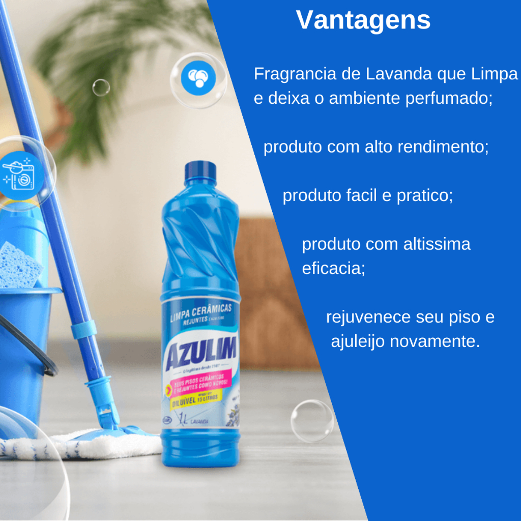 Azulim Limpa Cerâmica Pisos Lavanda 1L Remove Encardido Terra Sujeiras Manchas de Privada Incrustações Uso Domestico