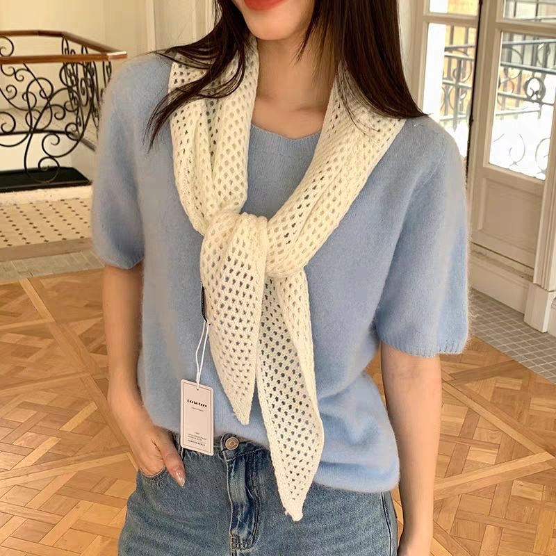 Lenço Bandana Tricot Ponto Croche Tendência Verão