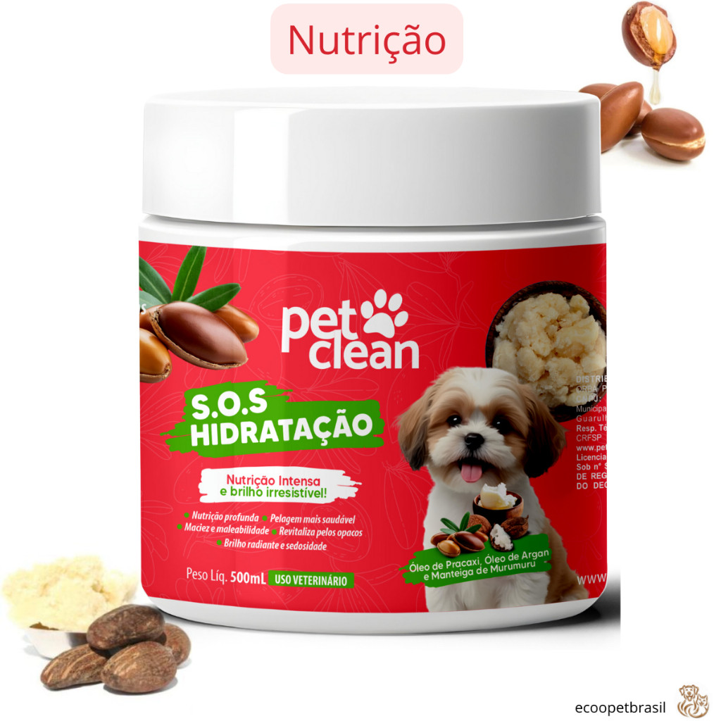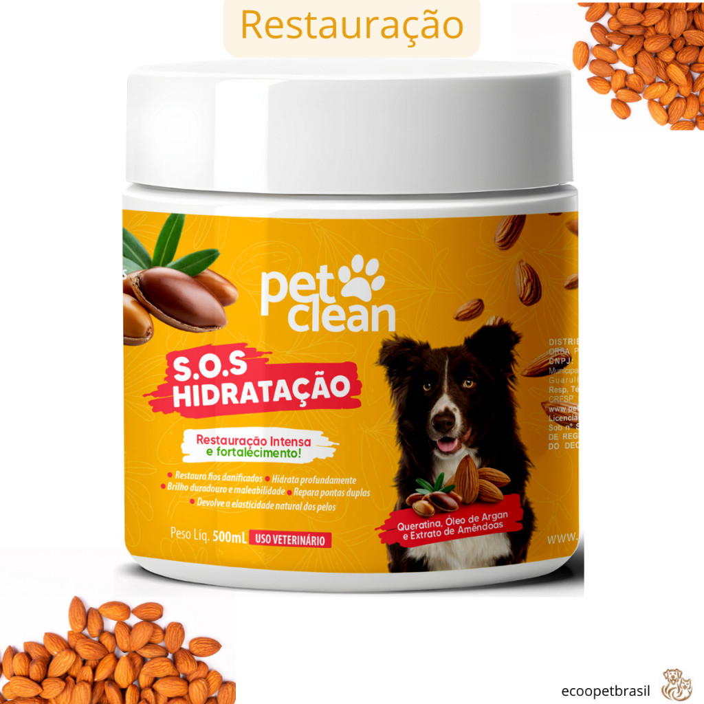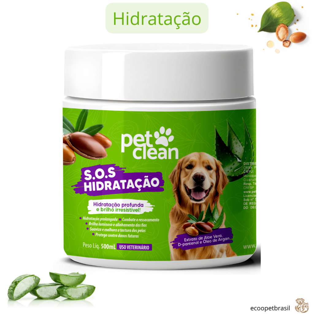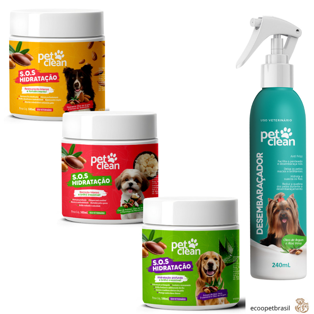 KIT Mascara de Hidratação de Pelos SOS 500mL Pet Clean, Cães e Gatos + Desembaraçador de Pelos 240mL