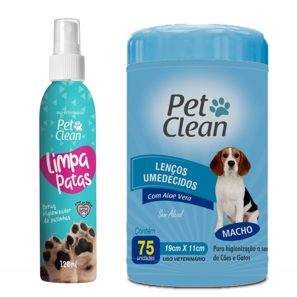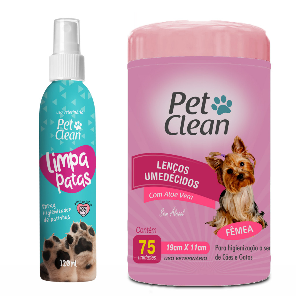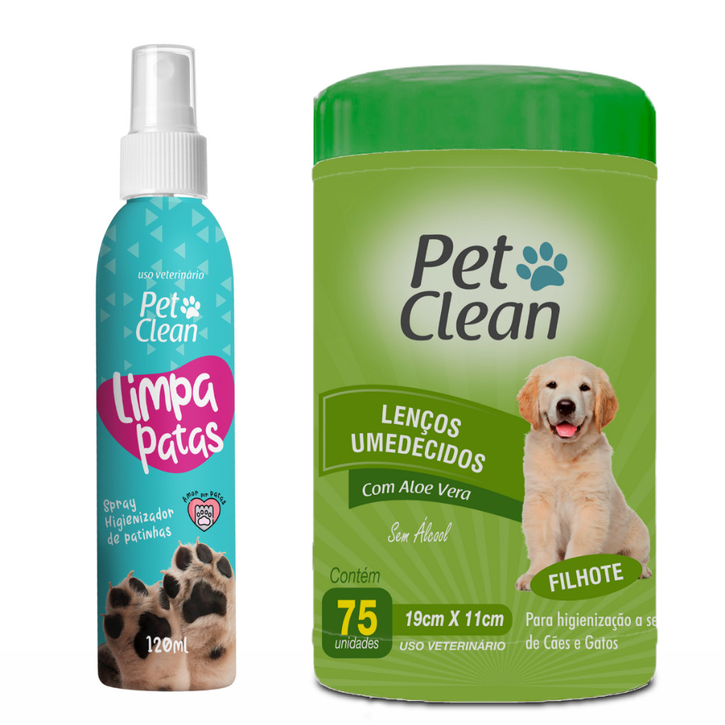 KIT Limpa Patas 120g + Lenço Umedecidos 75 unidades para Cachorro Cães e Gatos Pet Clean