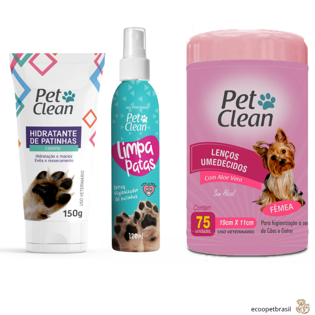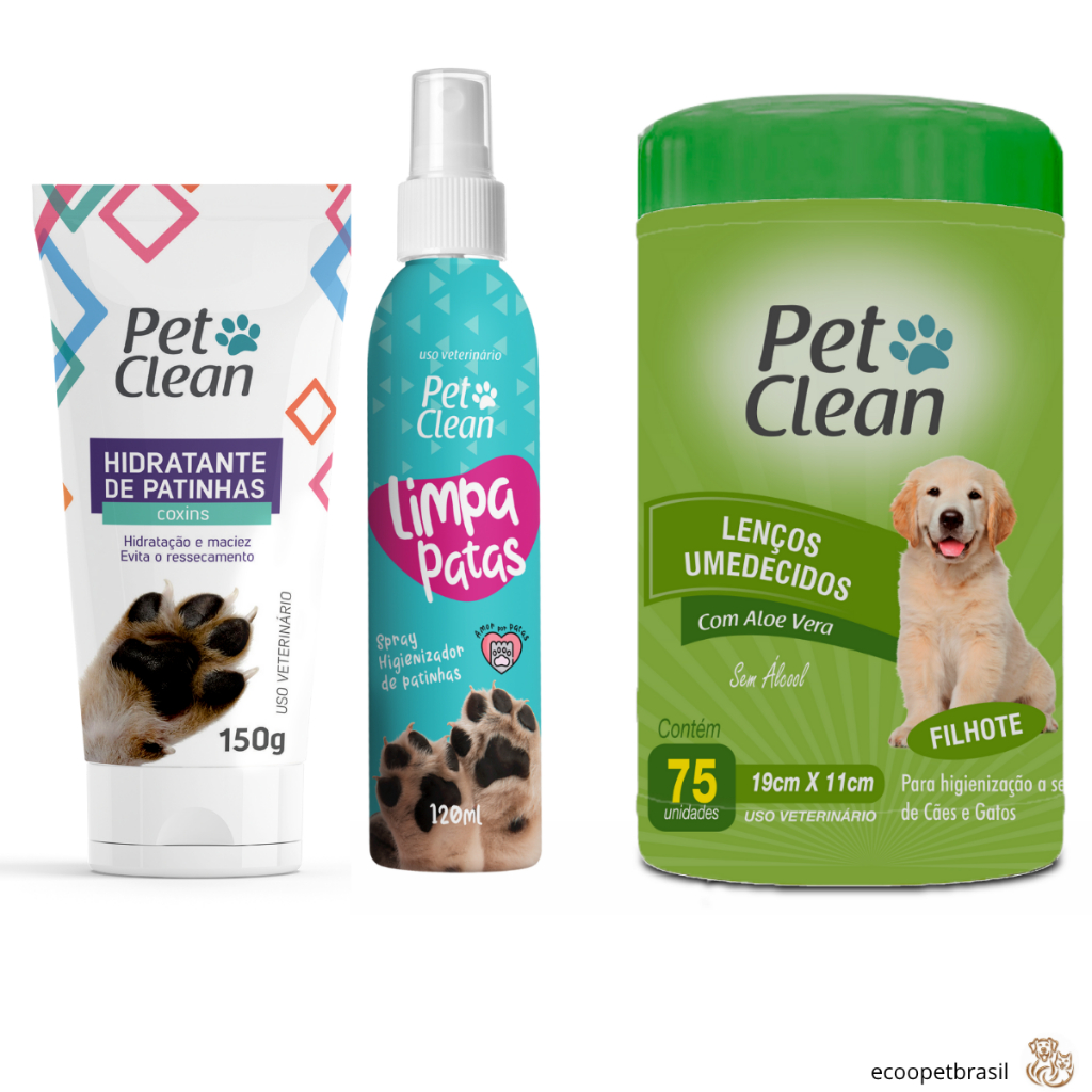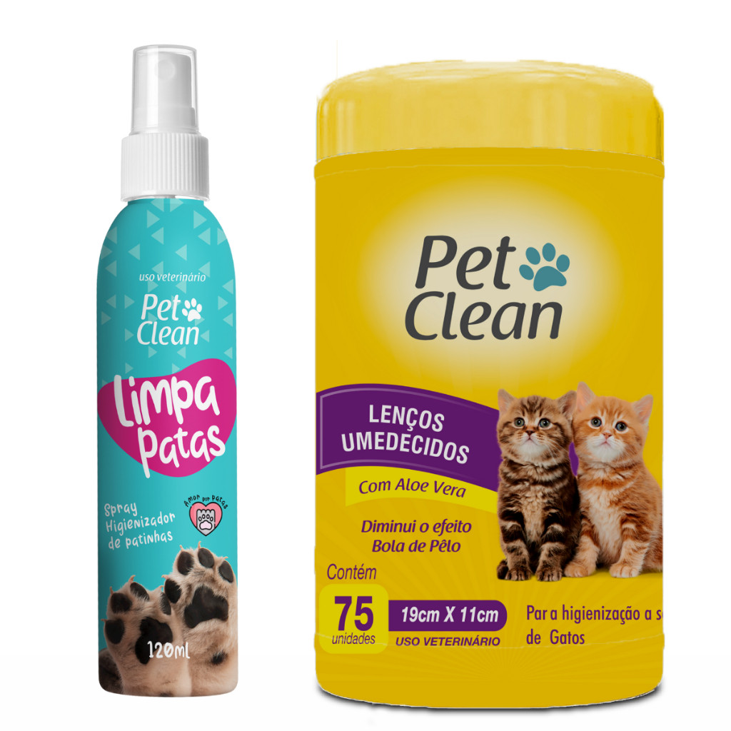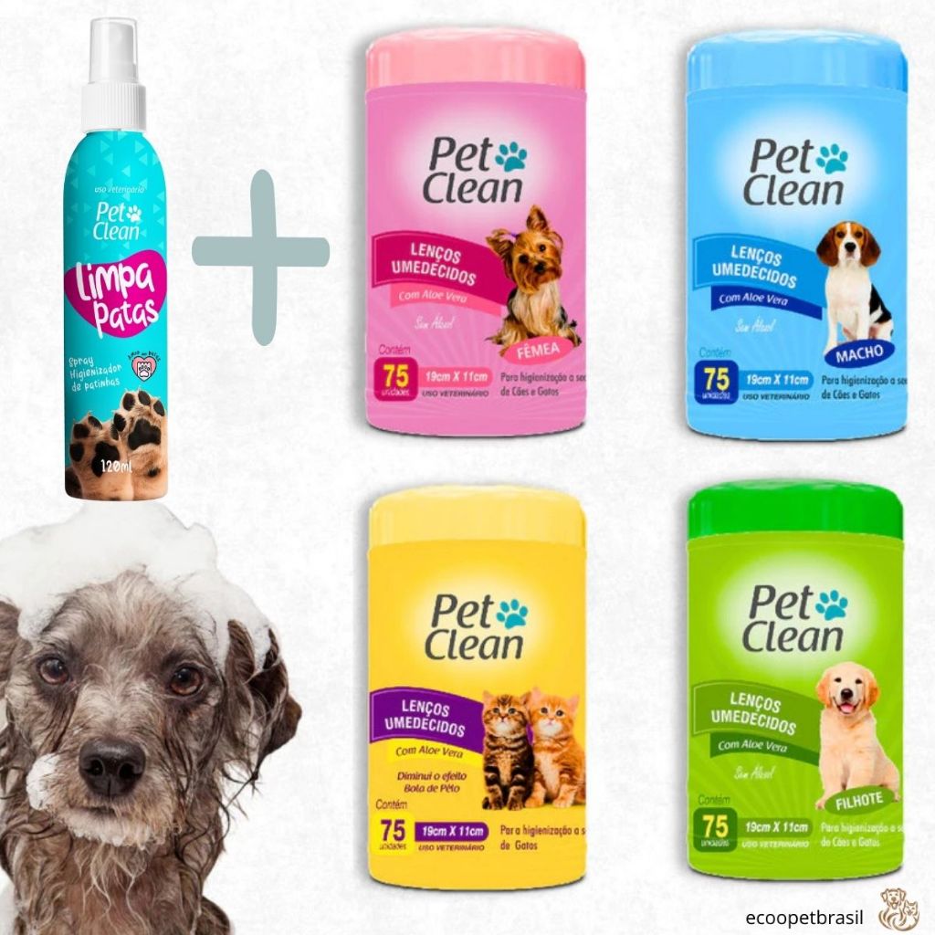 KIT Limpa Patas 120g + Lenço Umedecidos 75 unidades para Cachorro Cães e Gatos Pet Clean