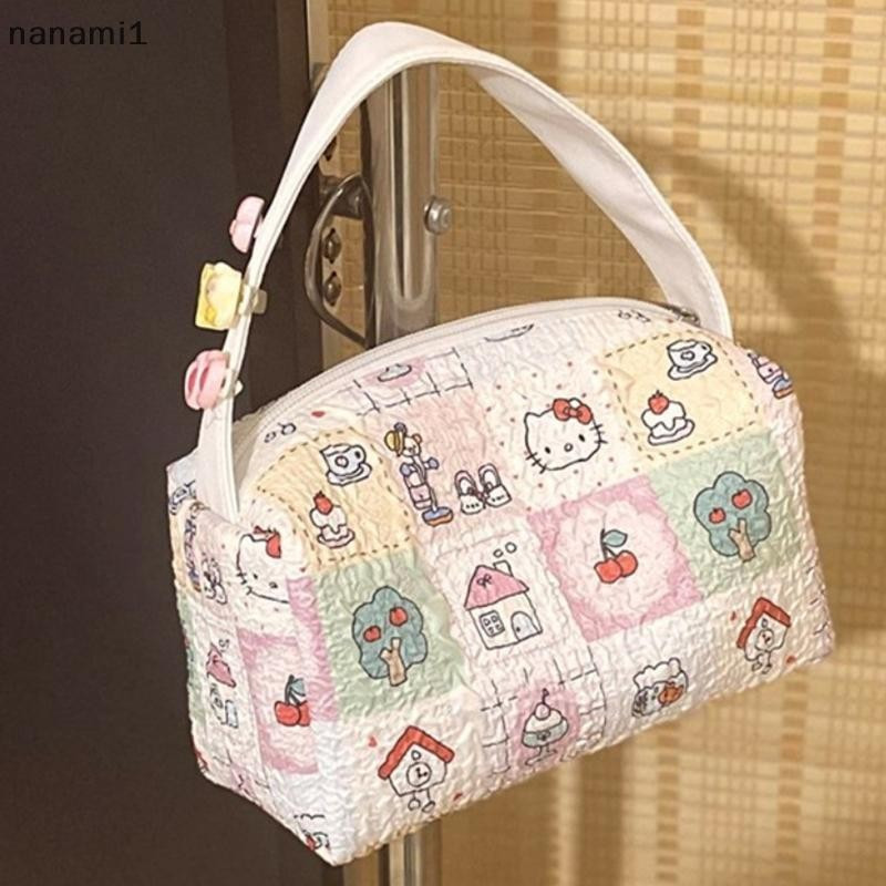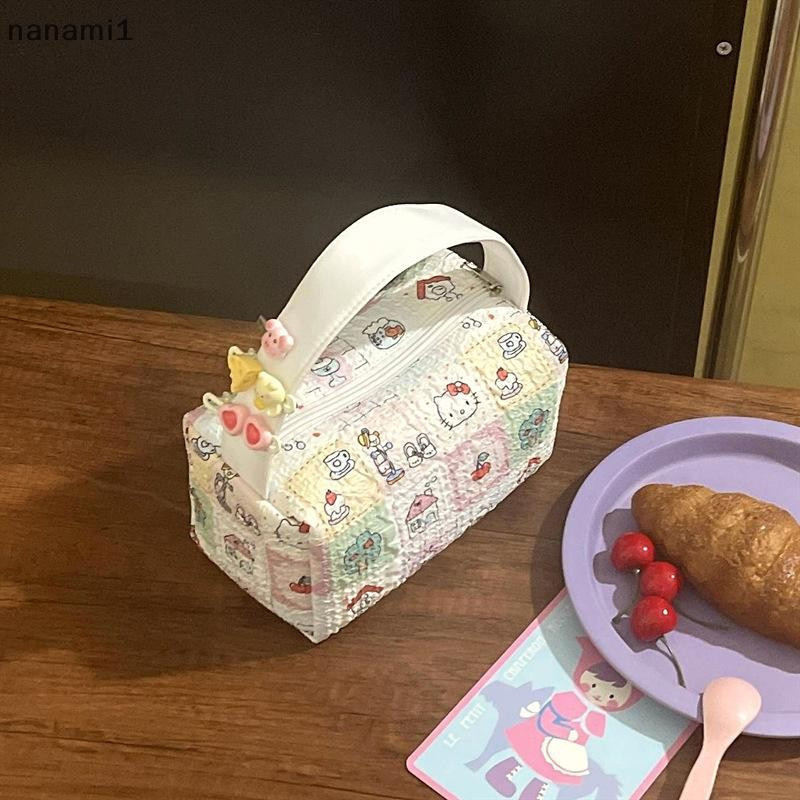 nanami1 Anime Sanrio Bolsa De Lona Kawaii Hello Kitty Maquiagem Cartoon Travel Portátil Armazenamento De Cosméticos De G