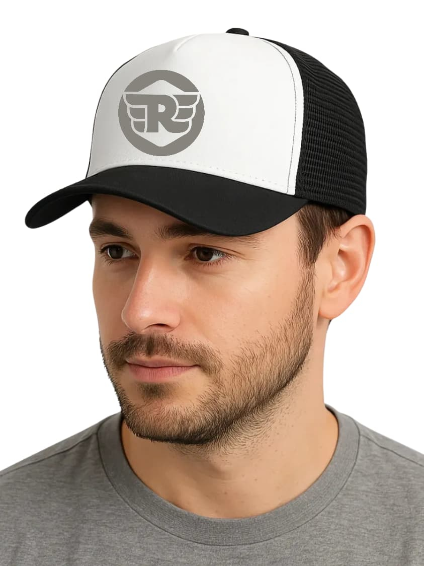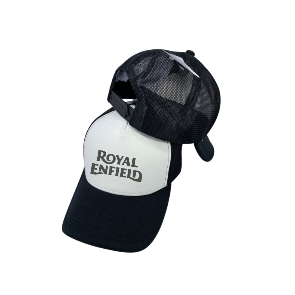 BONÉ ROYAL ENFIELD ESTAMPADO SILBOLO E ESCRITA CINZA BONÉ ROYAL AJUSTAVEL BRANCO E PRETO