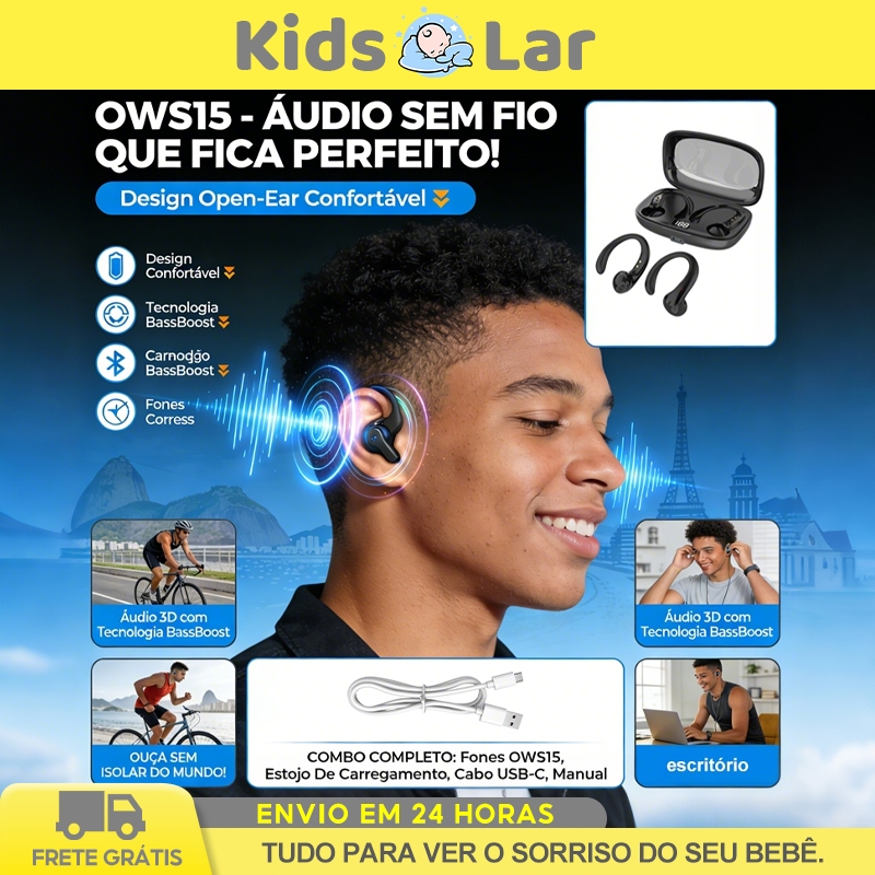 Fone de Ouvido Bluetooth Sem Fio OWS15 Open-end Ultra-Long Battery Lifety de 4 horas Design Não-Ouvido