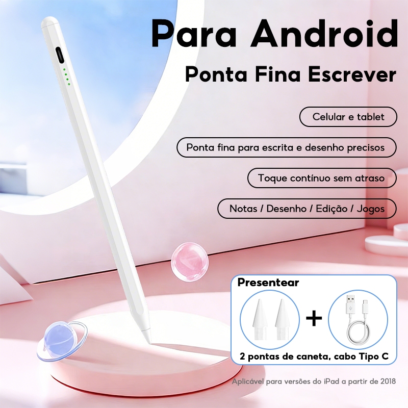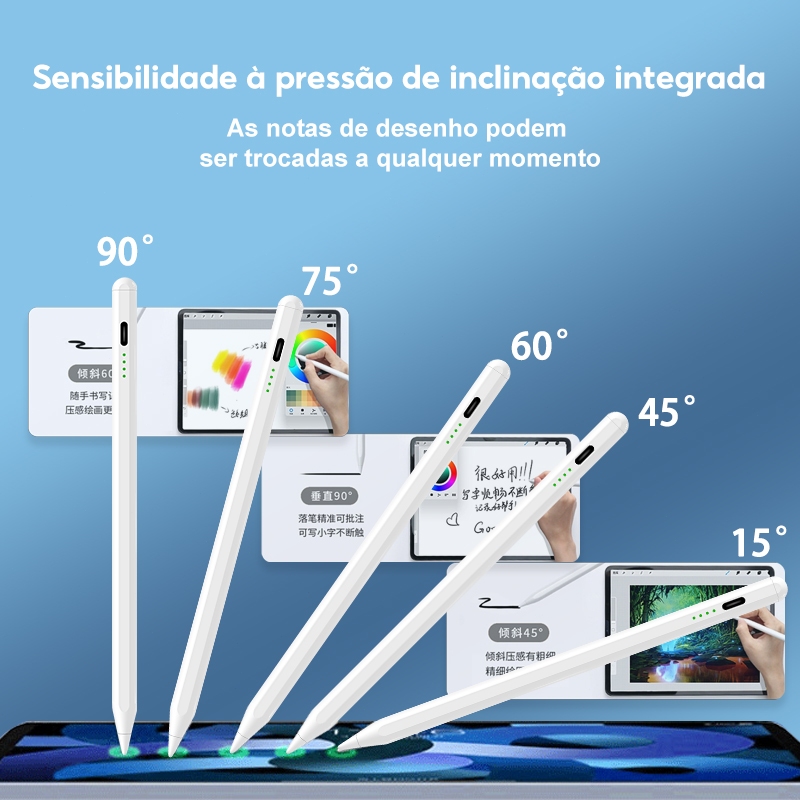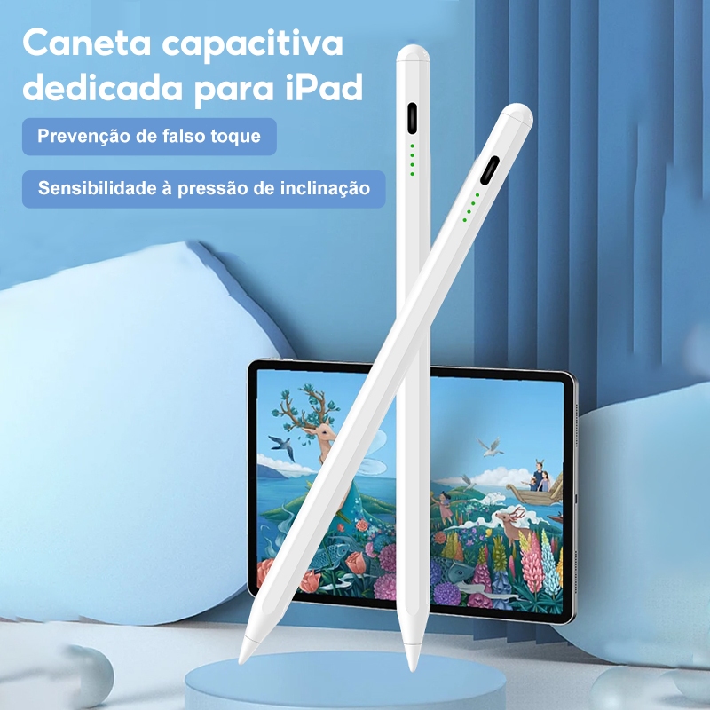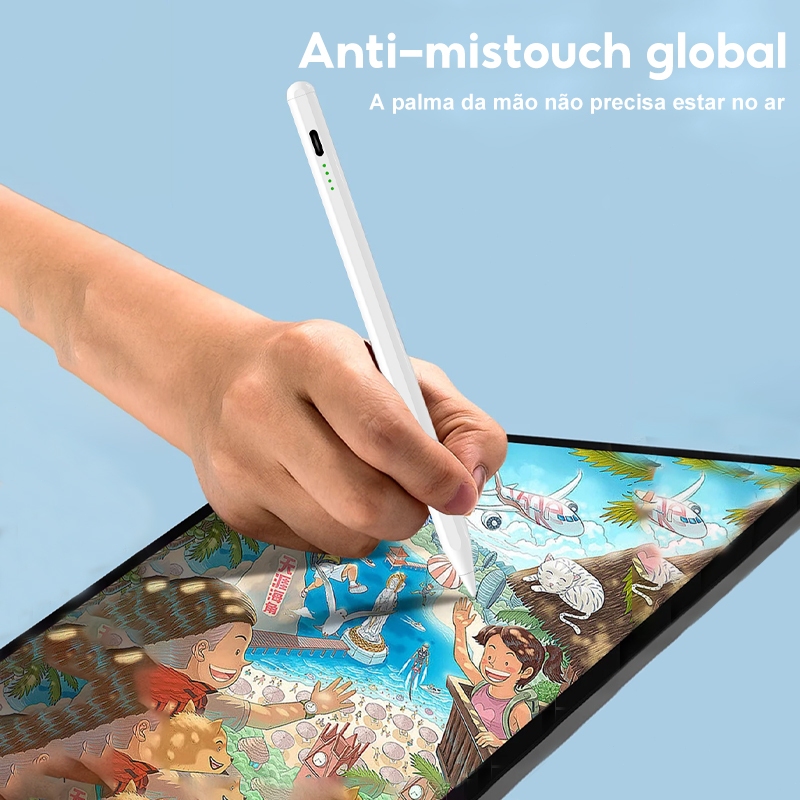 Caneta Stylus Touch para iPad Alta Precisão Ponta Fina Escrever/Desenho Rejeição de Palma e Inclinação