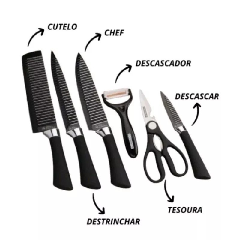 Kit 6 Peças Facas Churrasco Profissional Antiaderente + Amolador