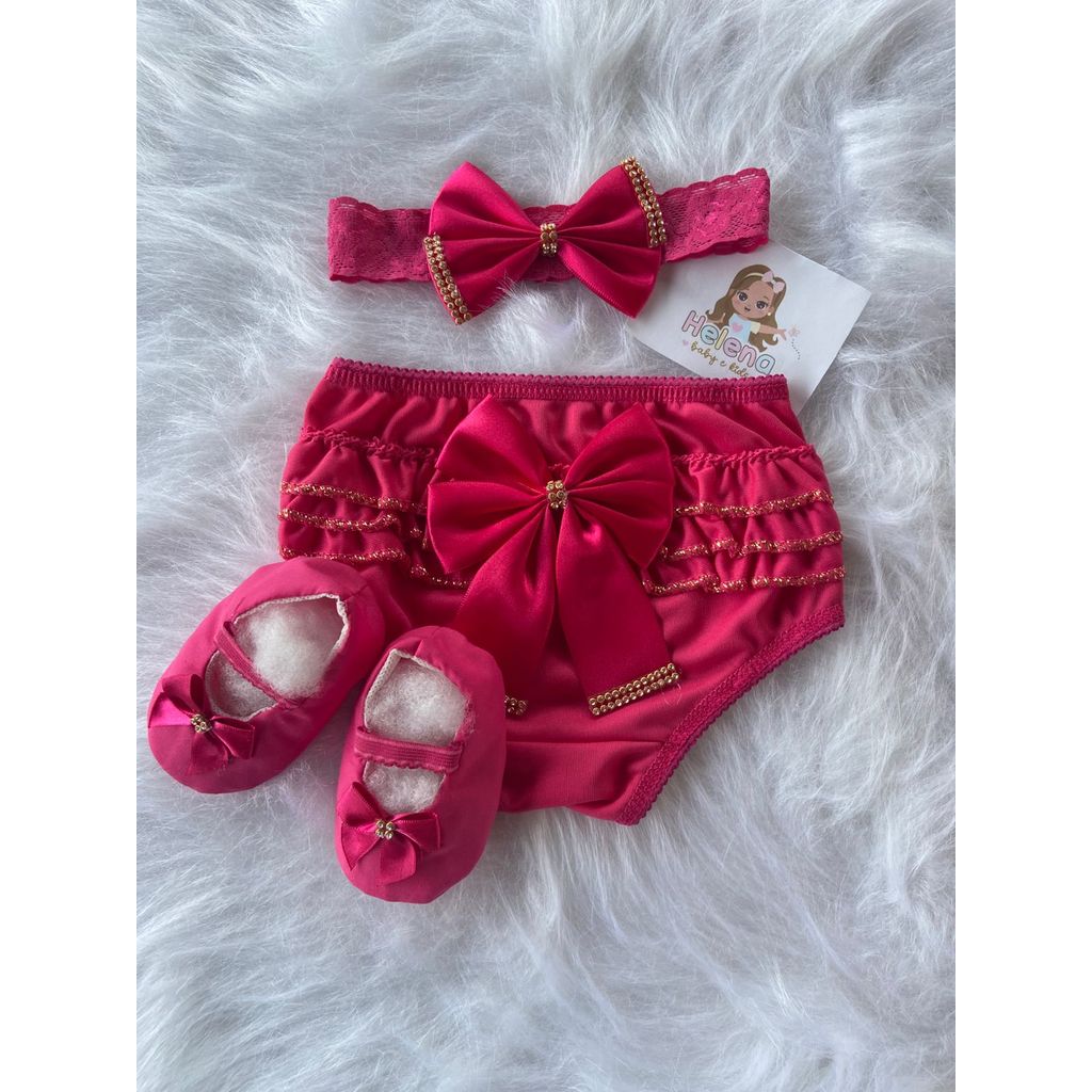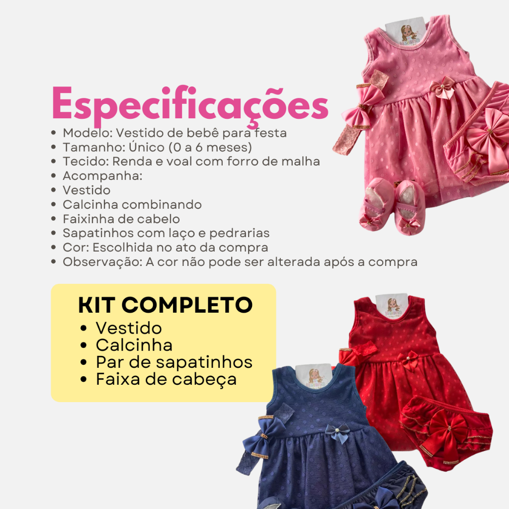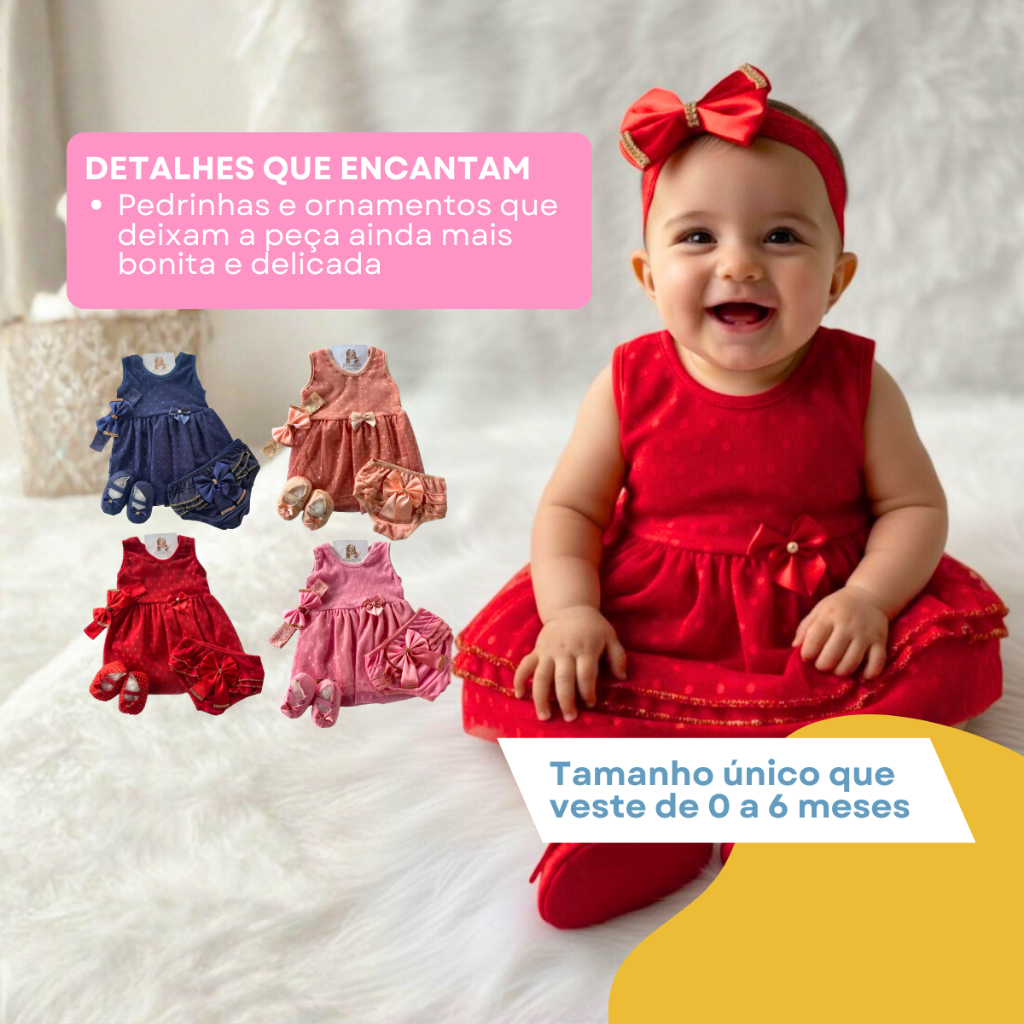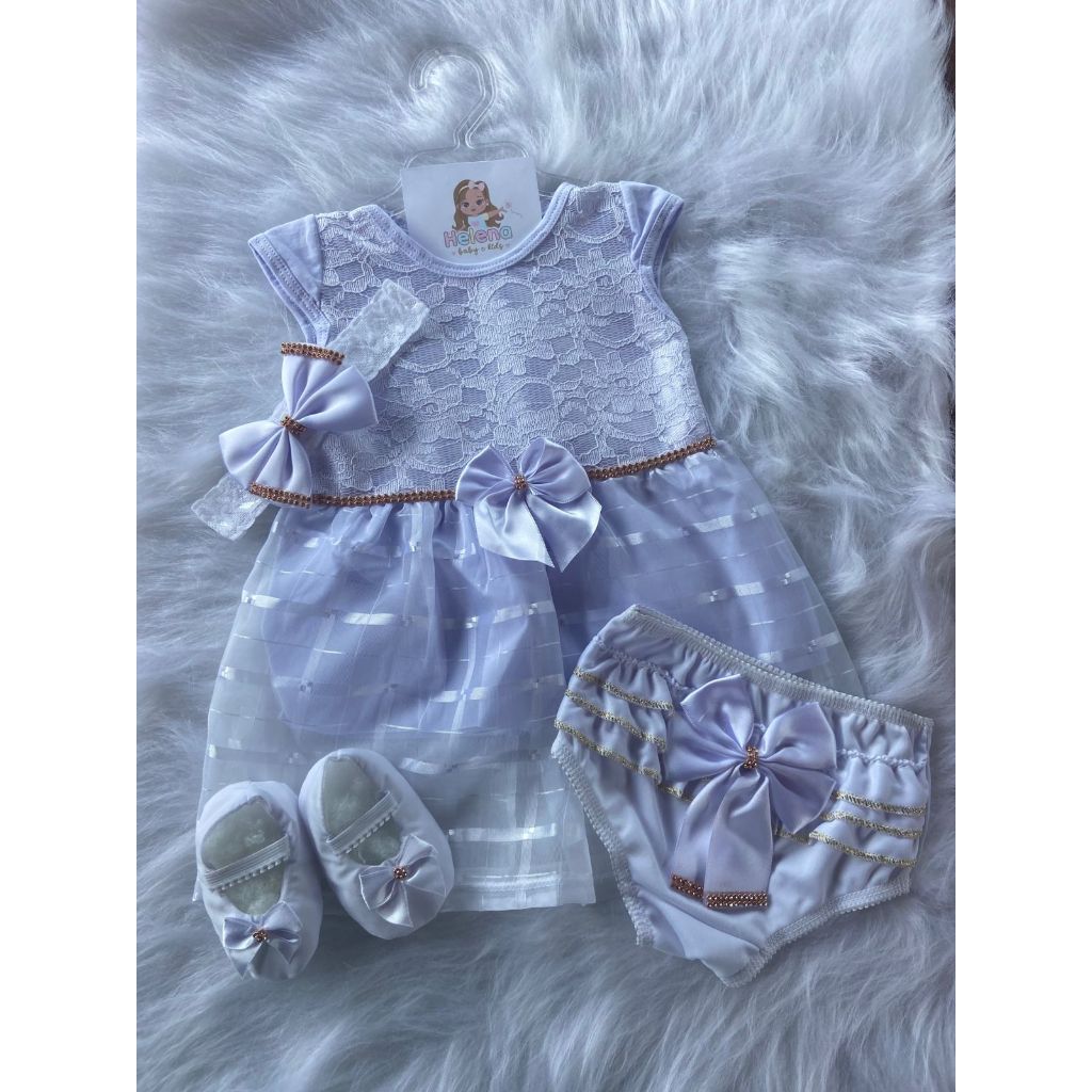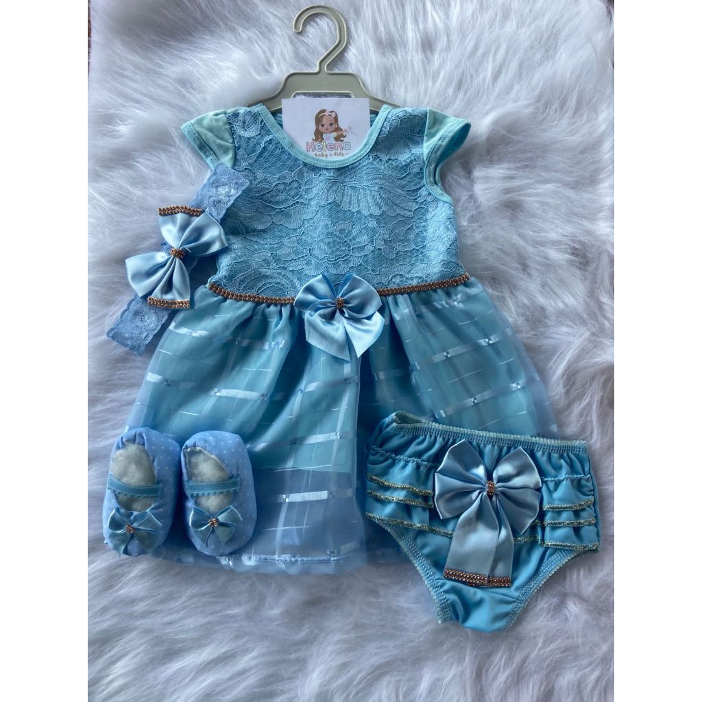 Vestido Infantil Menina bebê com 4 peças festa luxo 0 á 6 meses + calcinha bunda rica