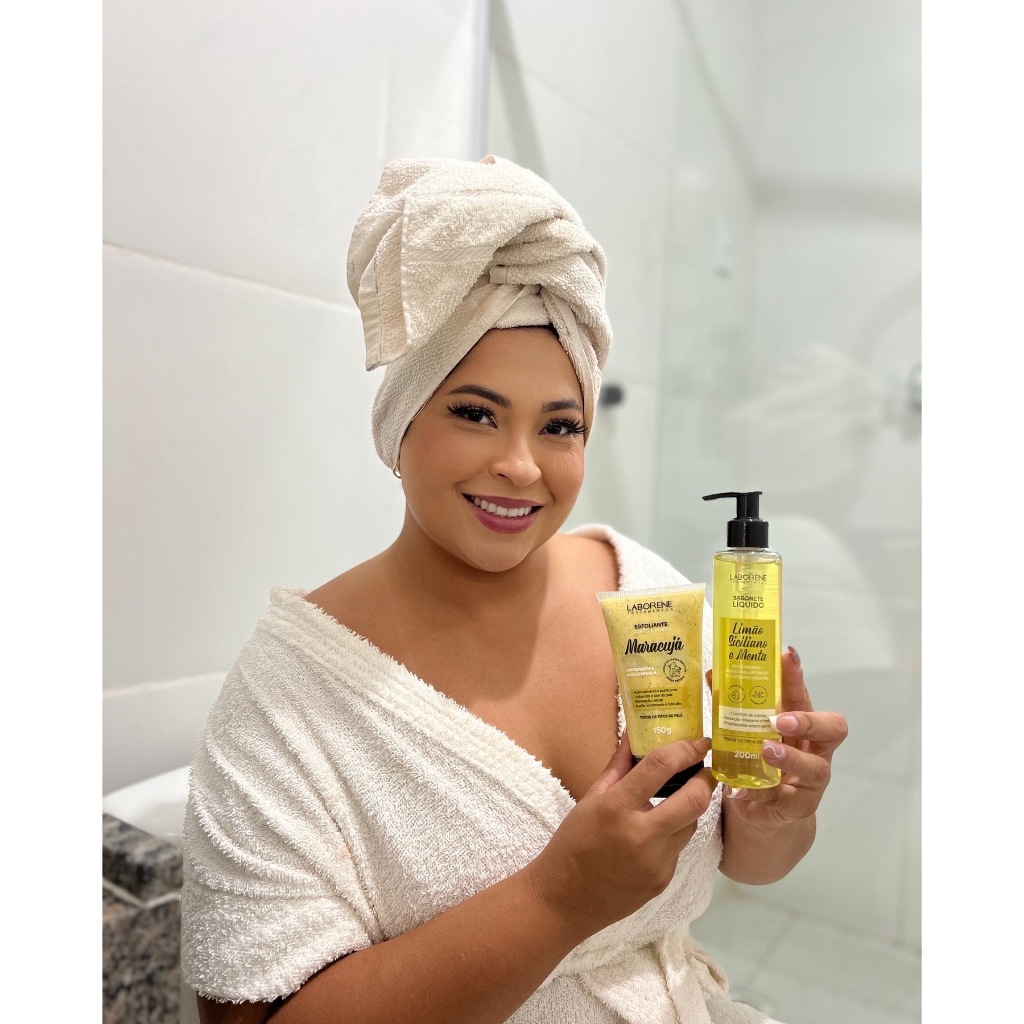 Kit Banho Premium Corpo E Rosto Maracujá Sabonete Liquido 200ml, Hidratante 200ml e Esfoliante 170g - Laborene