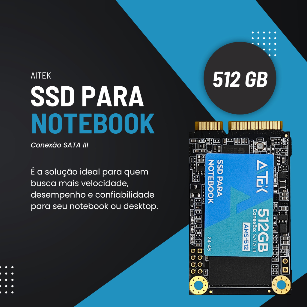 SSD M SATA Aitek AMS 128GB 256GB 512GB Para Notebook SATA III Rápido Leitura 500MB Gravação 445MB Top