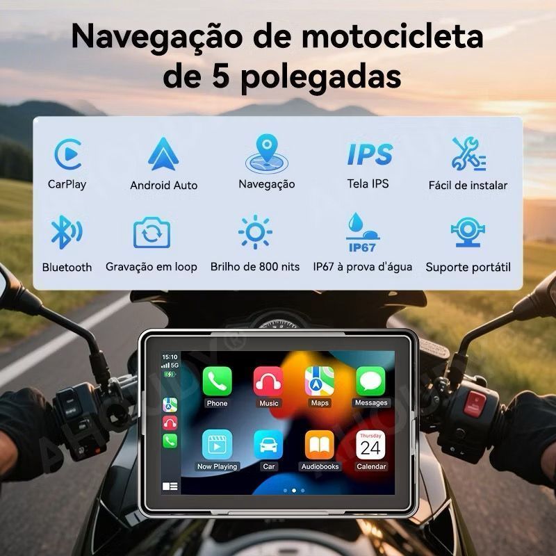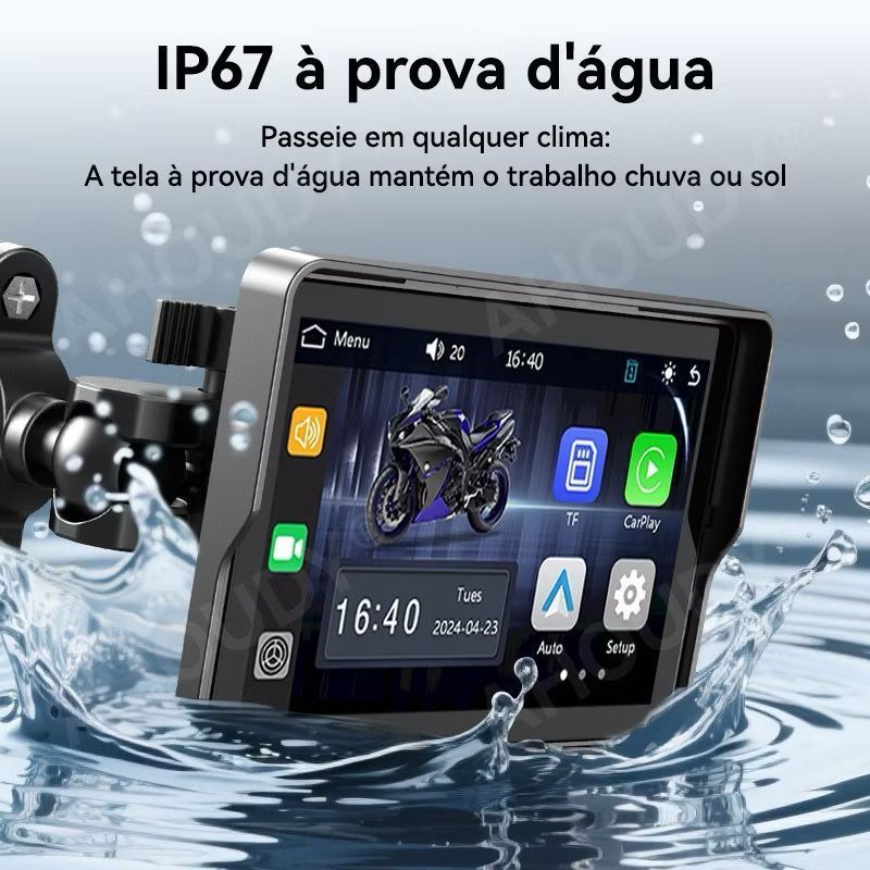 Multimídia para Moto Carplay Android Auto Portátil À Prova D'água 5’’ Tela Touch